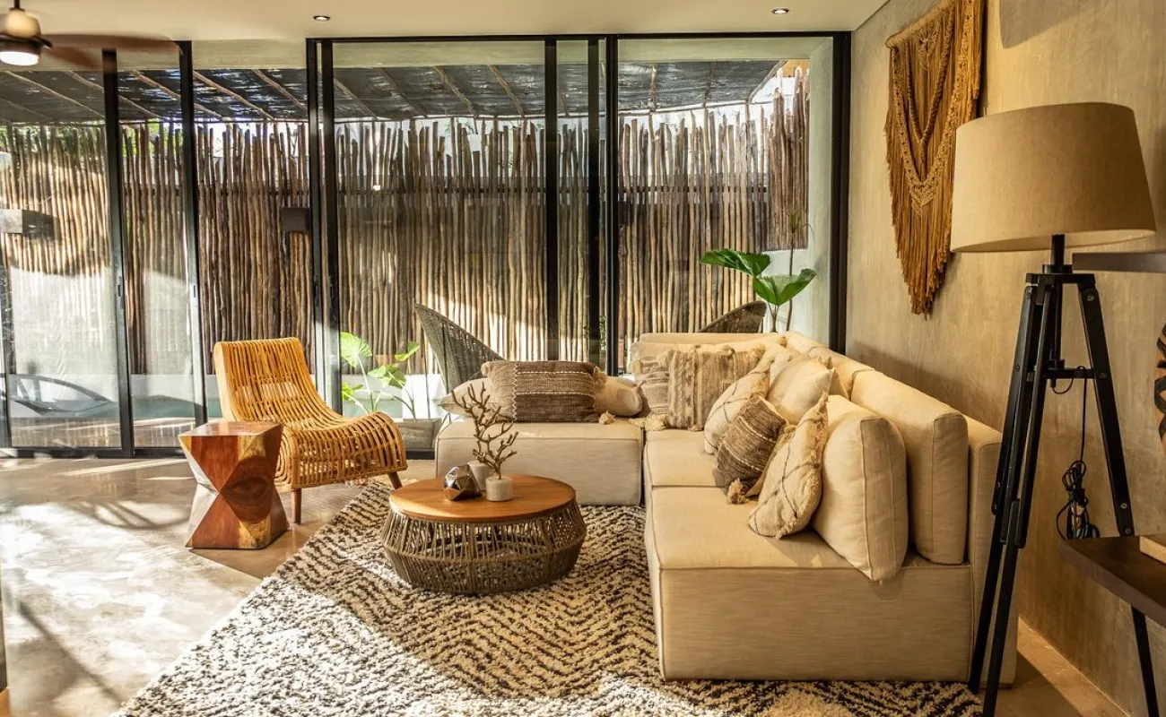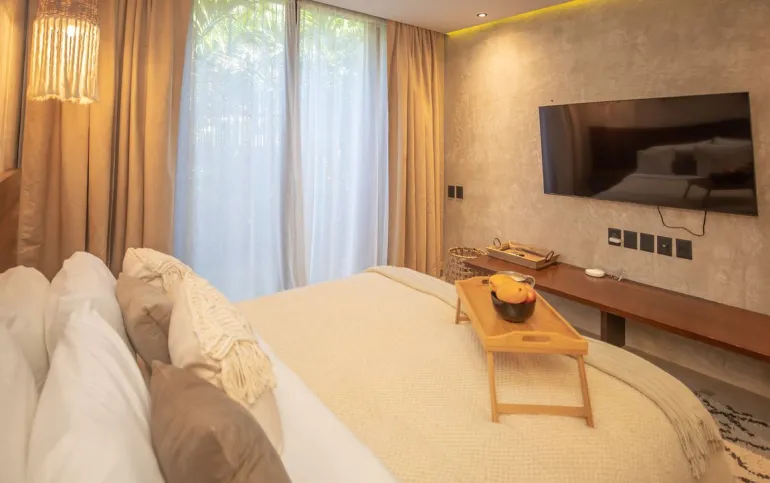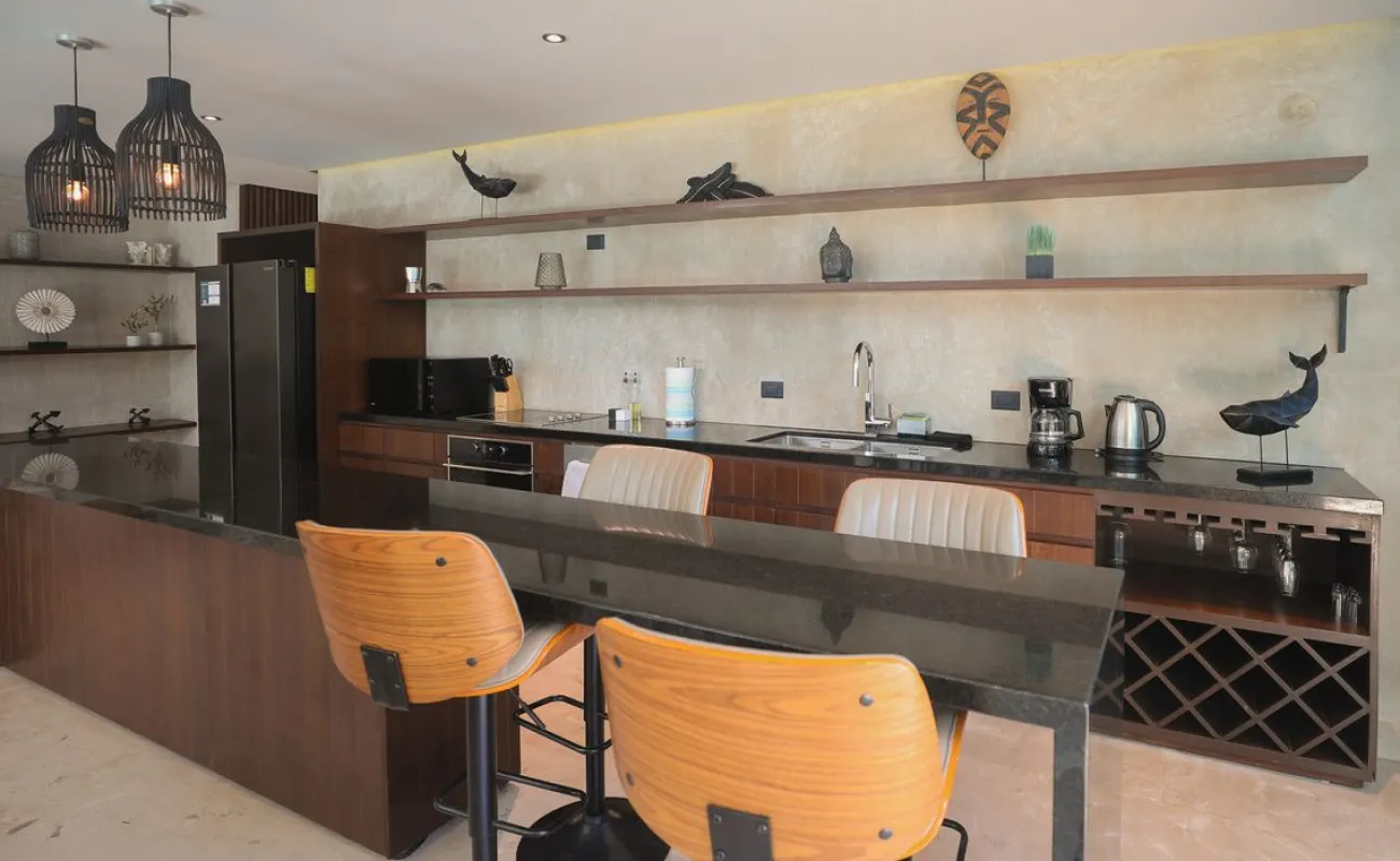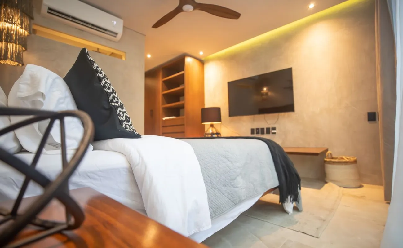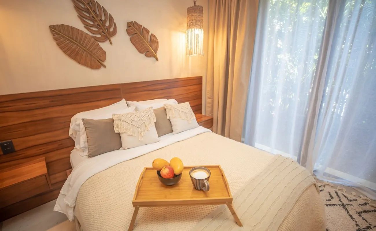● Prepárese para sorprenderse con nuestra moderna y elegante espacio diseñado con el estilo "Tuluminati" en Tulum. Disfrute de una velocidad de Internet de 100 Mbps ultrarrápida y comodidades de primer nivel, que incluyen una cocina totalmente equipada con lavavajillas, aire acondicionado en todas las áreas, una piscina y un jardín privados, e instalaciones esenciales como plancha, lavadora y secadora, todo esto, además de seguridad las 24 horas para su tranquilidad. ● El espacio Este apartamento está situado en el primer piso de Casa Natura en el barrio de Aldea Zamá. ● Dos habitaciones, cada una con una cama king-size, un Smart TV (con Netflix gratis) y un baño privado. ● El apartamento también ofrece Internet de alta velocidad, ya que cada habitación tiene su repetidor de señal wifi, lo que garantiza un acceso a Internet sin interrupciones en toda la propiedad. ● Servicios y zonas comunes Este condominio es enteramente para usted, con jardín y piscina privados. ● Otros aspectos destacables Odessa by Casa Natura está situada en un entorno ecológico. Nos esforzamos por ser lo más respetuosos posible con la naturaleza. Le agradeceríamos mucho que se abstuviera de tirar basura a la calle, apagar las luces y el aire acondicionado cuando no los use y respetar a los animales de la zona.