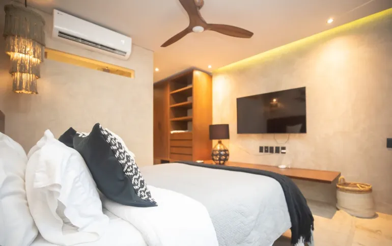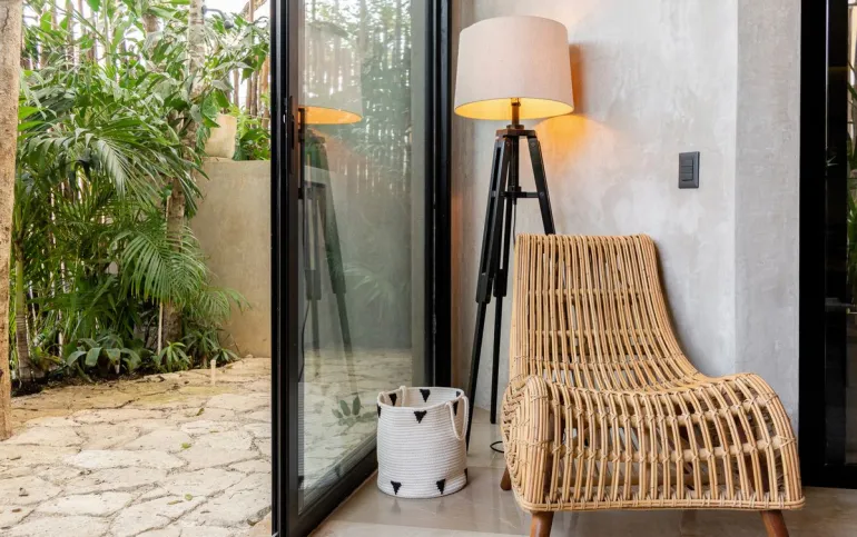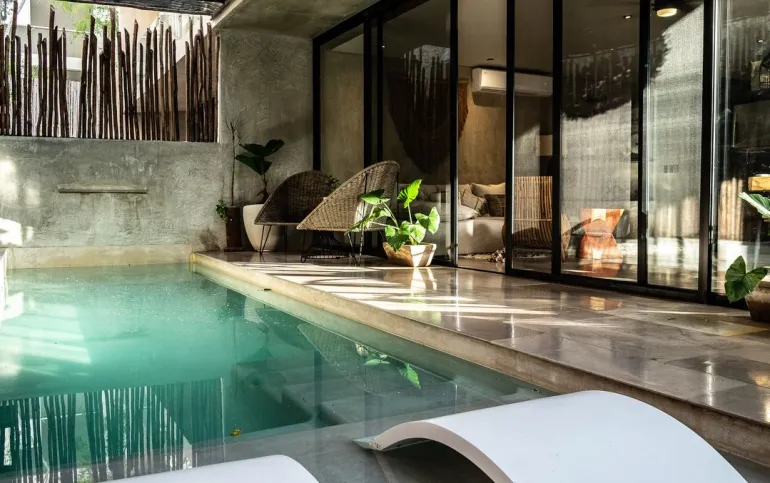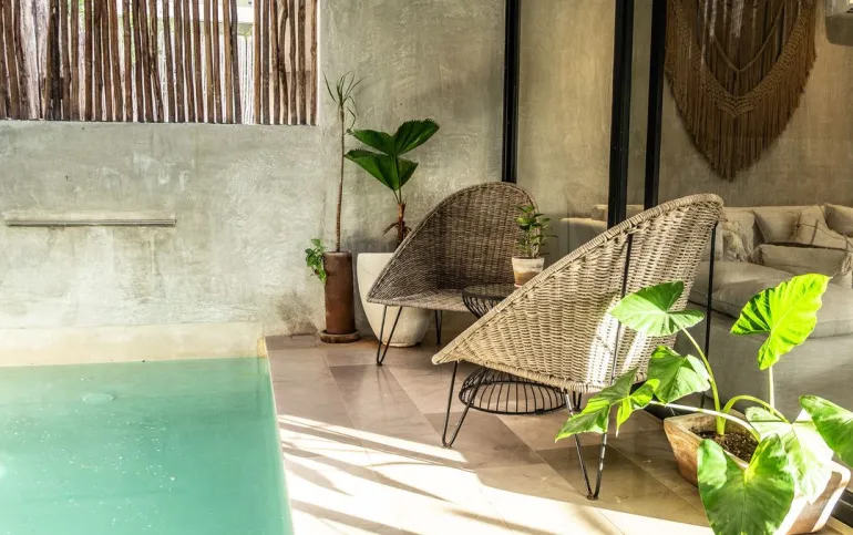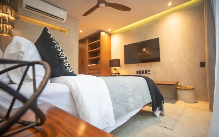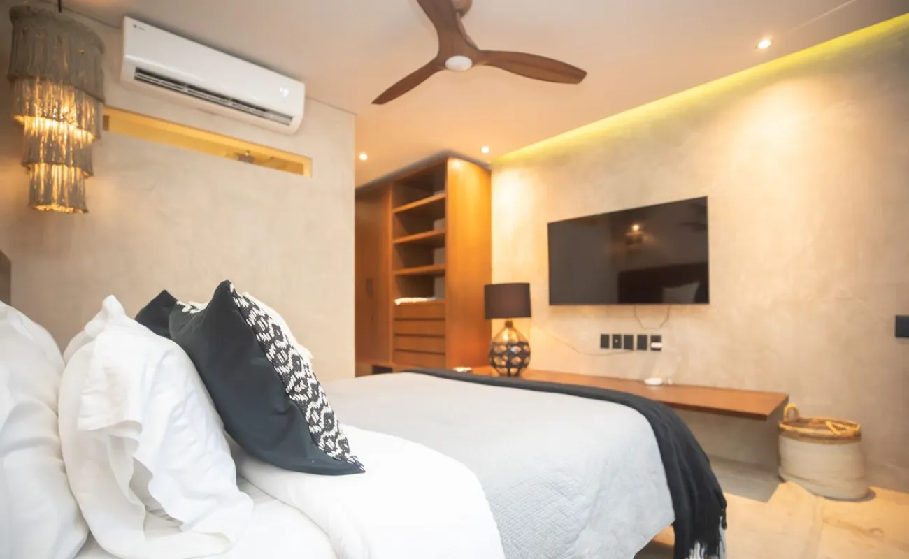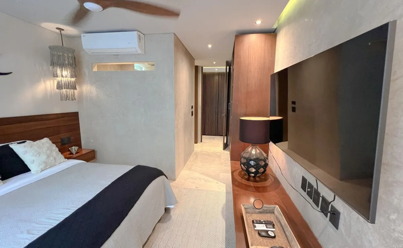 ● Prepárese para sorprenderse con nuestra moderna y elegante espacio diseñado con el estilo "Tuluminati" en Tulum. Disfrute de una velocidad de Internet de 100 Mbps ultrarrápida y comodidades de primer nivel, que incluyen una cocina totalmente equipada con lavavajillas, aire acondicionado en todas las áreas, una piscina y un jardín privados, e instalaciones esenciales como plancha, lavadora y secadora, todo esto, además de seguridad las 24 horas para su tranquilidad. ● El espacio Este apartamento está situado en el primer piso de Casa Natura en el barrio de Aldea Zamá. ● Dos habitaciones, cada una con una cama king-size, un Smart TV (con Netflix gratis) y un baño privado. ● El apartamento también ofrece Internet de alta velocidad, ya que cada habitación tiene su repetidor de señal wifi, lo que garantiza un acceso a Internet sin interrupciones en toda la propiedad. ● Servicios y zonas comunes Este condominio es enteramente para usted, con jardín y piscina privados. ● Otros aspectos destacables Odessa by Casa Natura está situada en un entorno ecológico. Nos esforzamos por ser lo más respetuosos posible con la naturaleza. Le agradeceríamos mucho que se abstuviera de tirar basura a la calle, apagar las luces y el aire acondicionado cuando no los use y respetar a los animales de la zona.