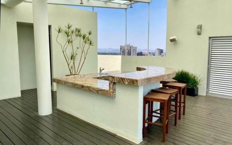 Magnífico PH para terminar a su gusto. Se entrega en obra blanca (solo baños y cocina). Vista de primer nivel. Sala - comedor Family Cocina moderna Medio baño de visitas 3 recámaras con baño completo Cuarto de servicio y de lavado Áreas comunes: Alberca y gym en Roof Garden Sala de usos múltiples Área de juegos infantiles