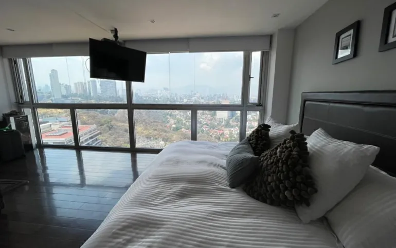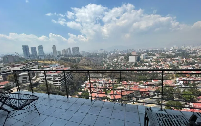 La mejor vista de la CDMX, en un departamento de dos pisos con acabados de lujo y una terraza privada de excelente tamaño. El conjunto cuenta con increíble rooftop y salón de eventos con vista 360 a la ciudad.