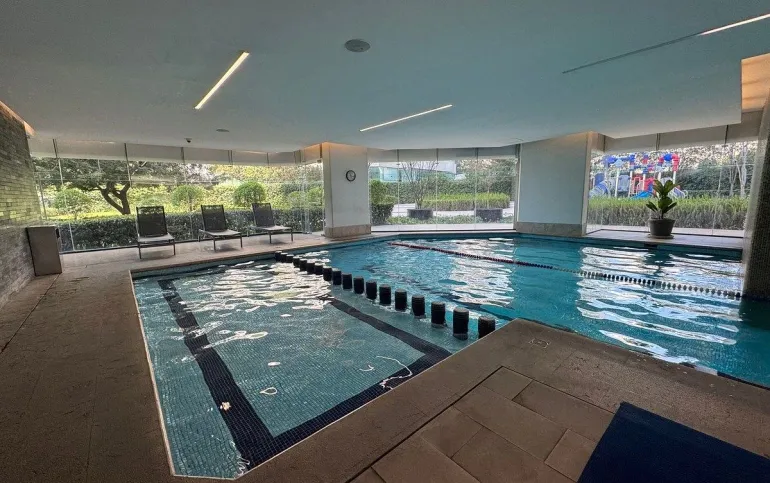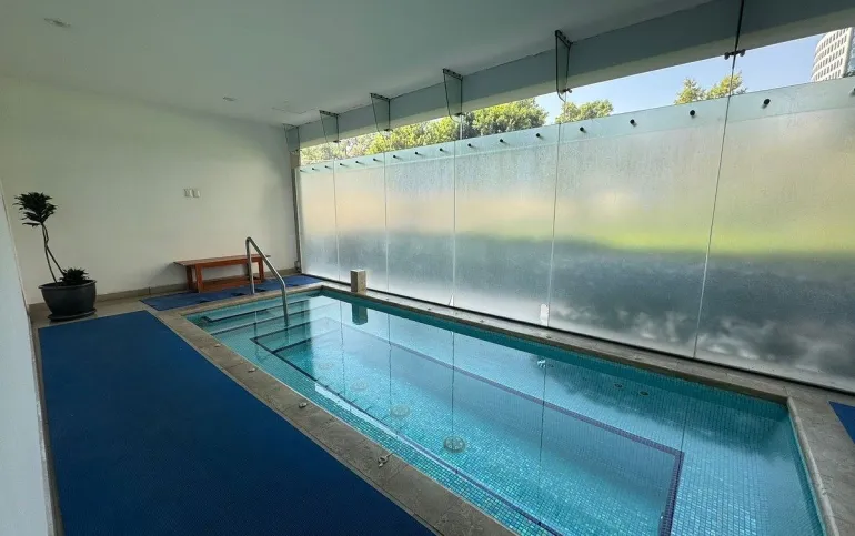 Amenidades: gimnasio, alberca, sauna, jacuzzi, ludoteca, etc.