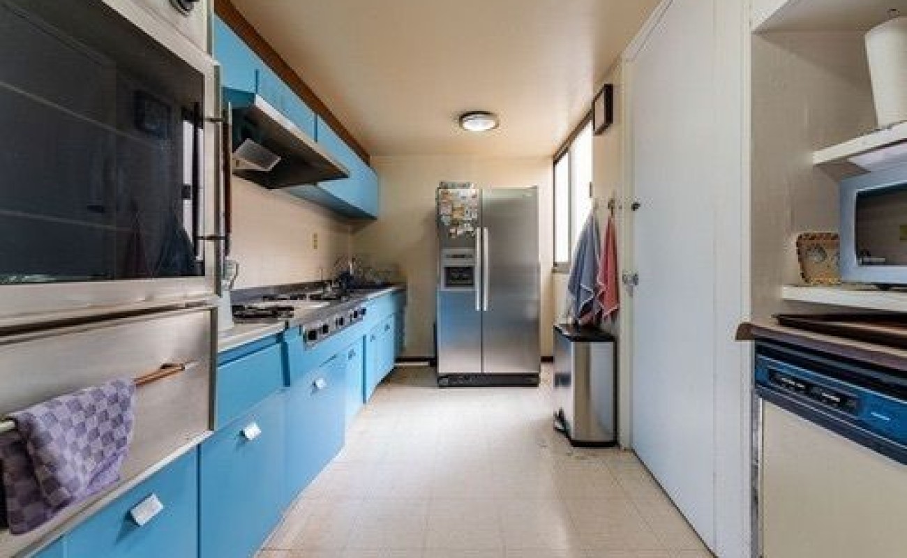 Departamento en piso 5 con mucha luz gracias a su orientación este-oeste, en calle amplia y abierta. Cuenta con grandes espacios para sala comedor y oficina. Cocina cerrada con lugar para poner una pequeño desayunador, tiene lavanderia estrecha y cuarto de servicio integrado con baño completo.