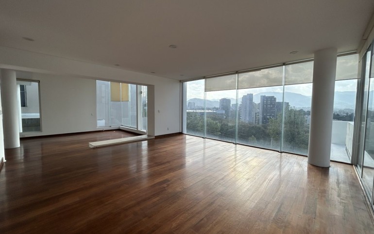 Amplia sala-comedor, cocina integral con una gran despensa y desayunador con salida a una terraza.