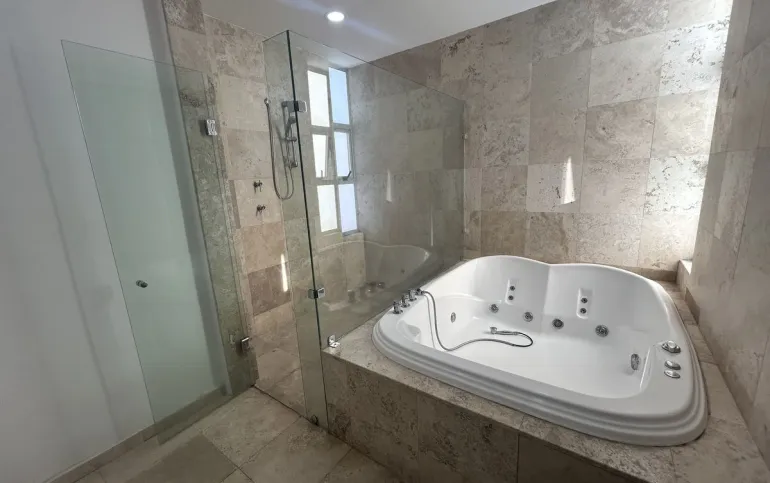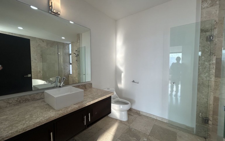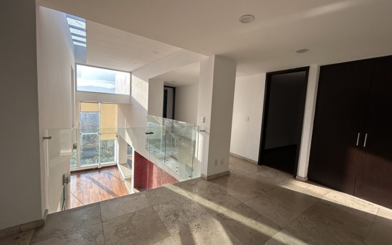 Cinco recámaras, cada una con baño, la principal con vestidor y terraza privada. Family, salón de juegos y jardín en la parte trasera de la casa.