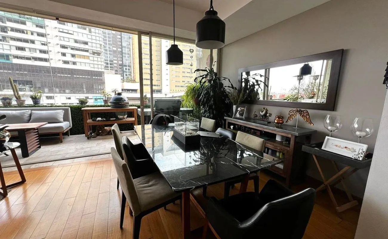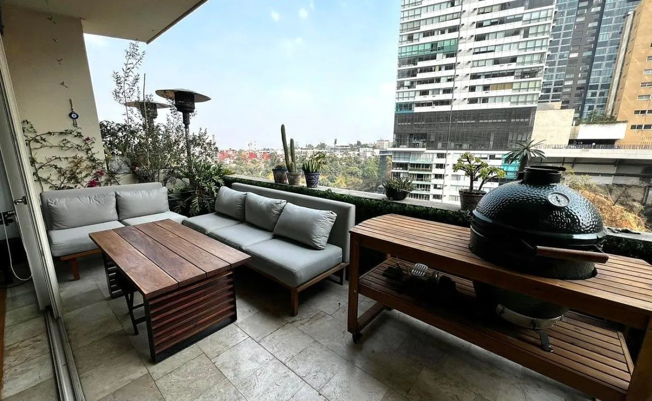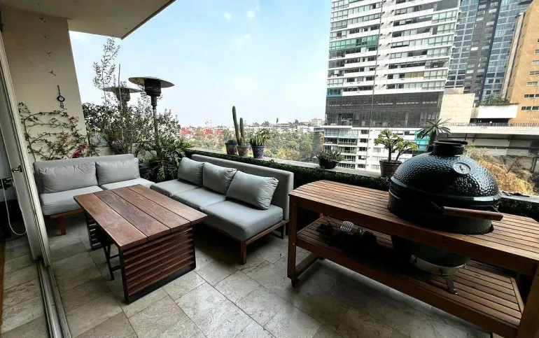 Con una espléndida vista, desde una terraza de 45 m². Tiene 3 recámaras con vañi, sala de tele, cuarto de lavado y de servicio. La renta incluye todas las amenidades de áreas comunes y del club. Tiene 200 m2 habitables y 45 m2 de terraza.