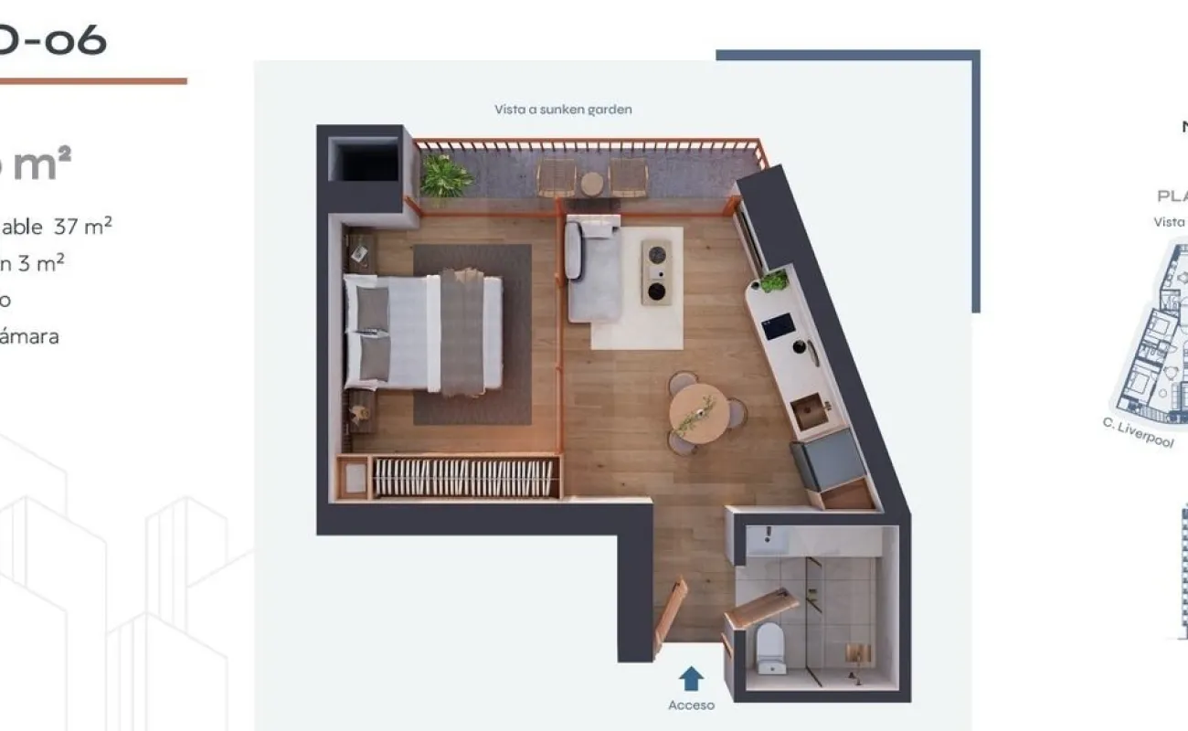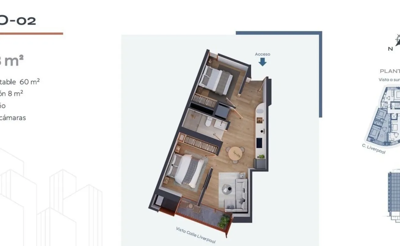 Ubicado en Liverpool una de las mejores y más demandadas zonas de la ciudad, cosmopolita, con servicios, bares, restaurantes, museos y galerías a unos pasos.