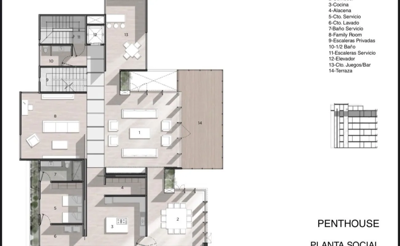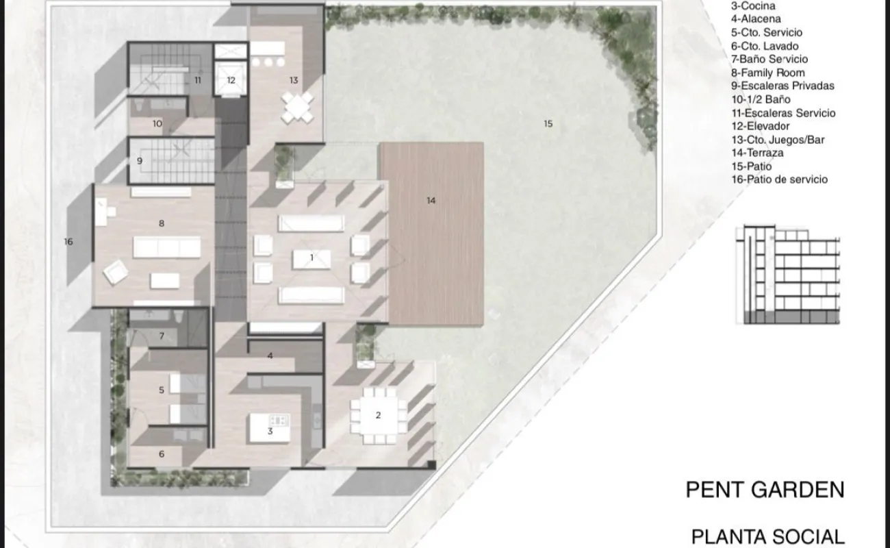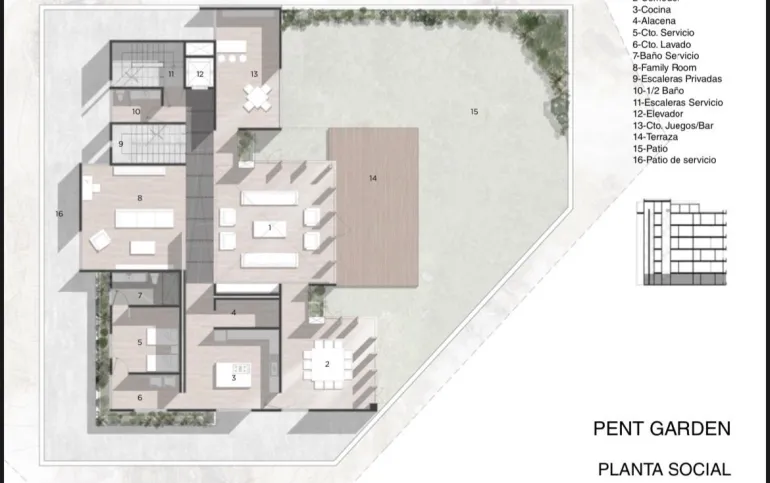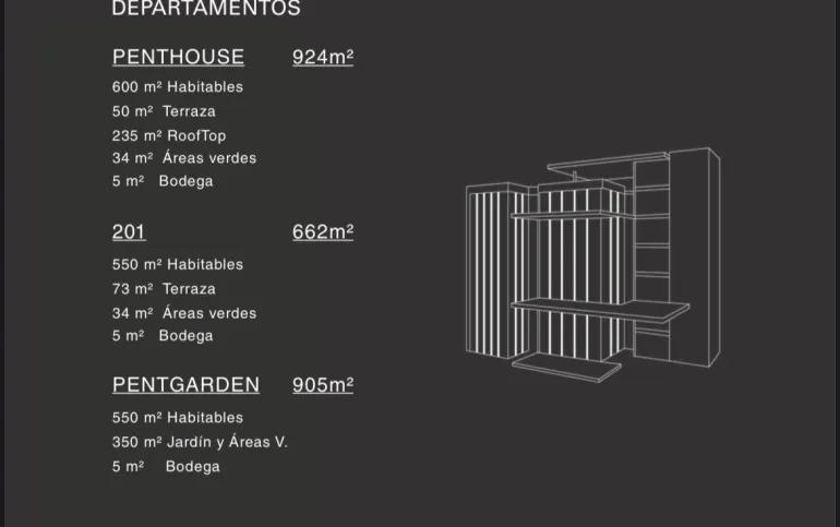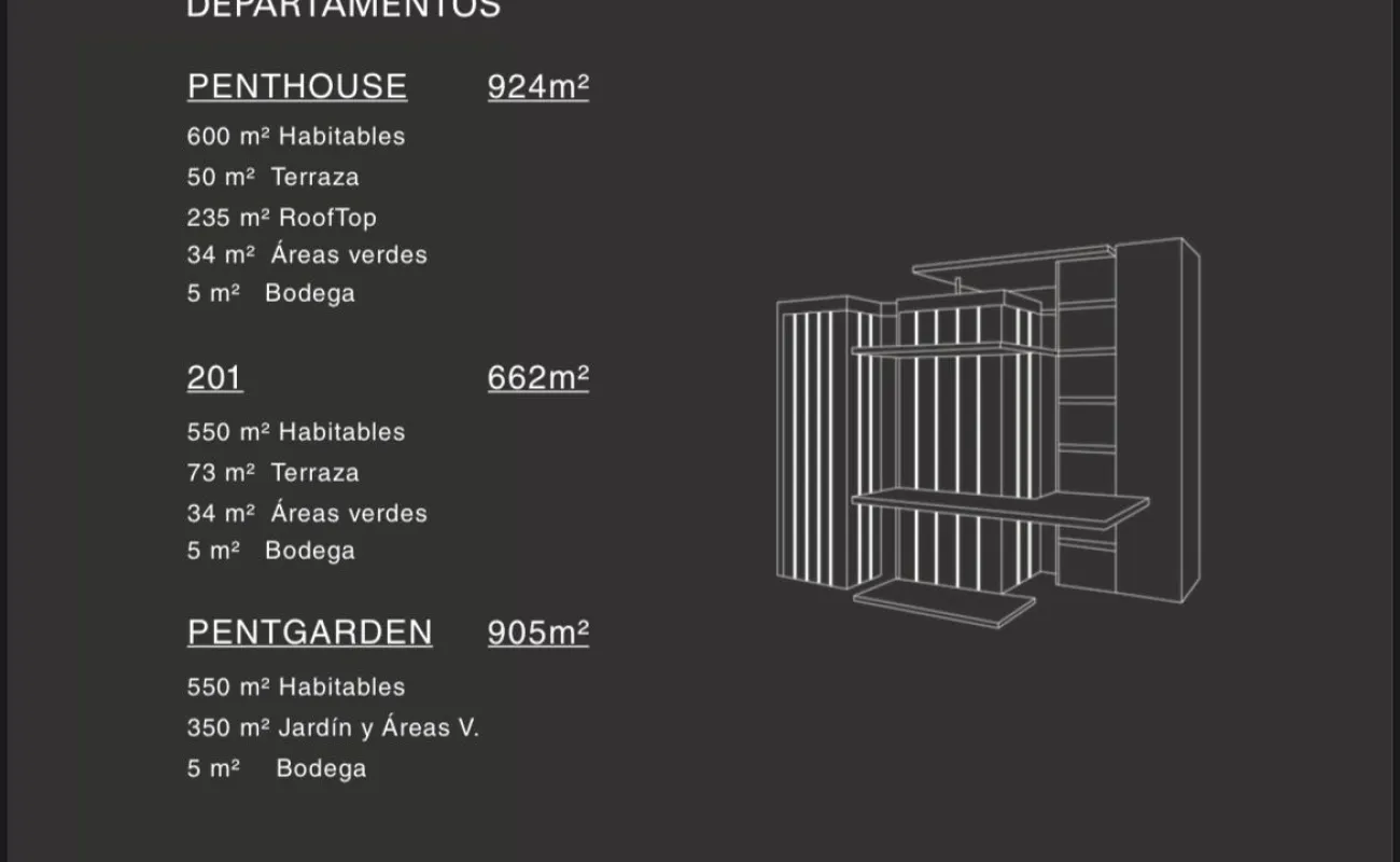 924 mts: 600 mts habitables, 50 mts de terraza, , 235 mts de rooftop, 34 mts de áreas verdes, 5 mts bodega