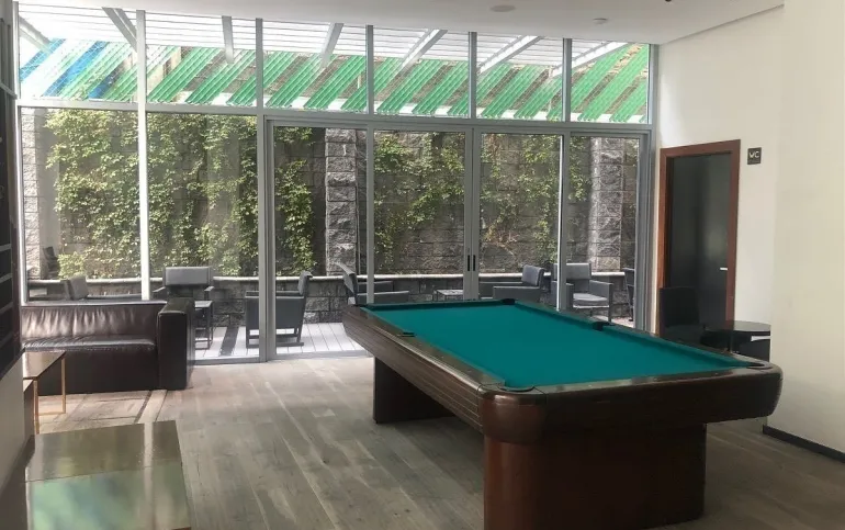 Edificio con múltiples amenidades como alberca, jacuzzi, gimnasio, spa, vapor, pista de patinaje, boliche, arcade, estética, canchas,, salones de usos múltiples, salón inglés y muchas más. Valet parking para visitas y vigilancia las 24 hr. del día.