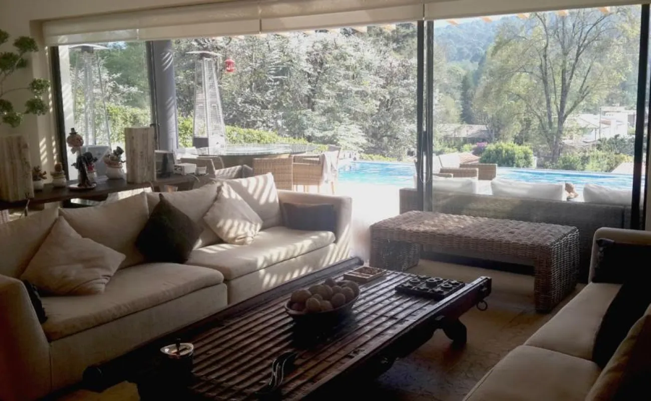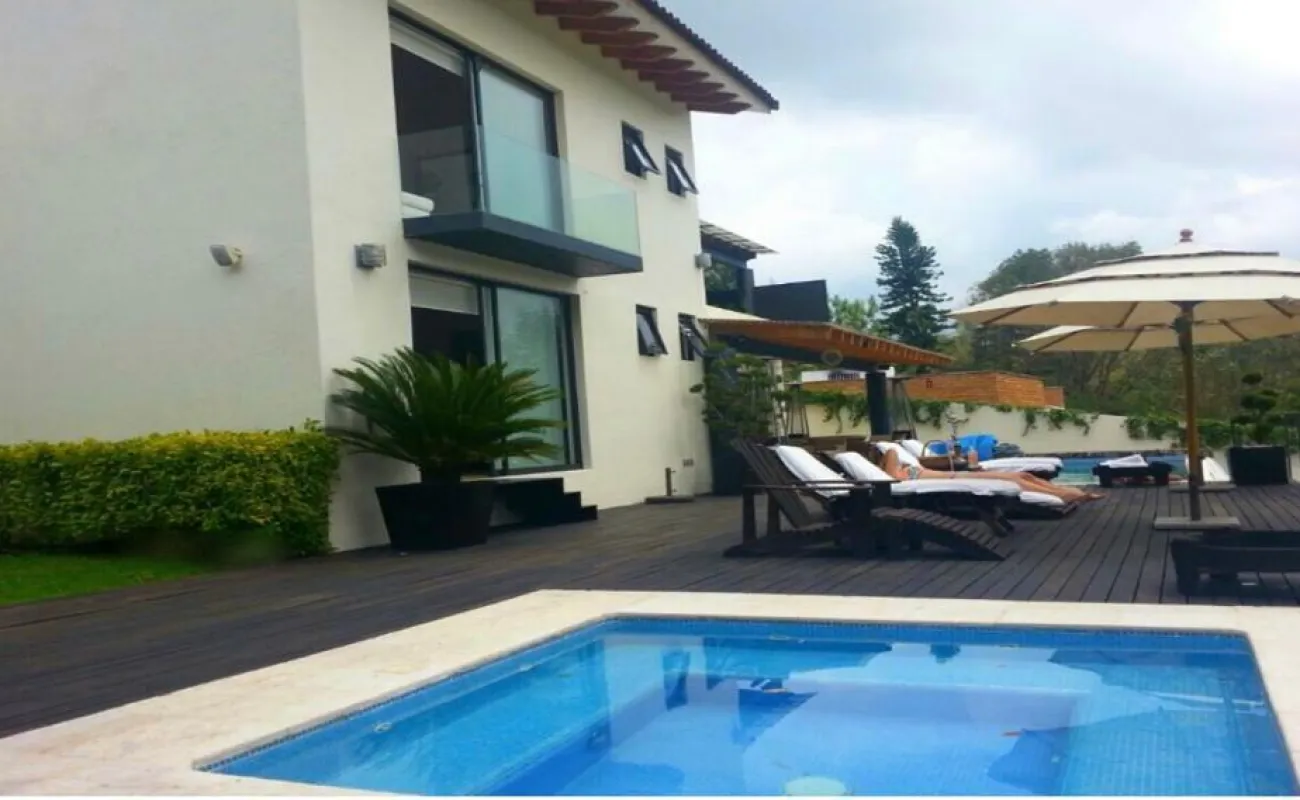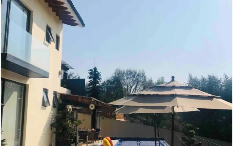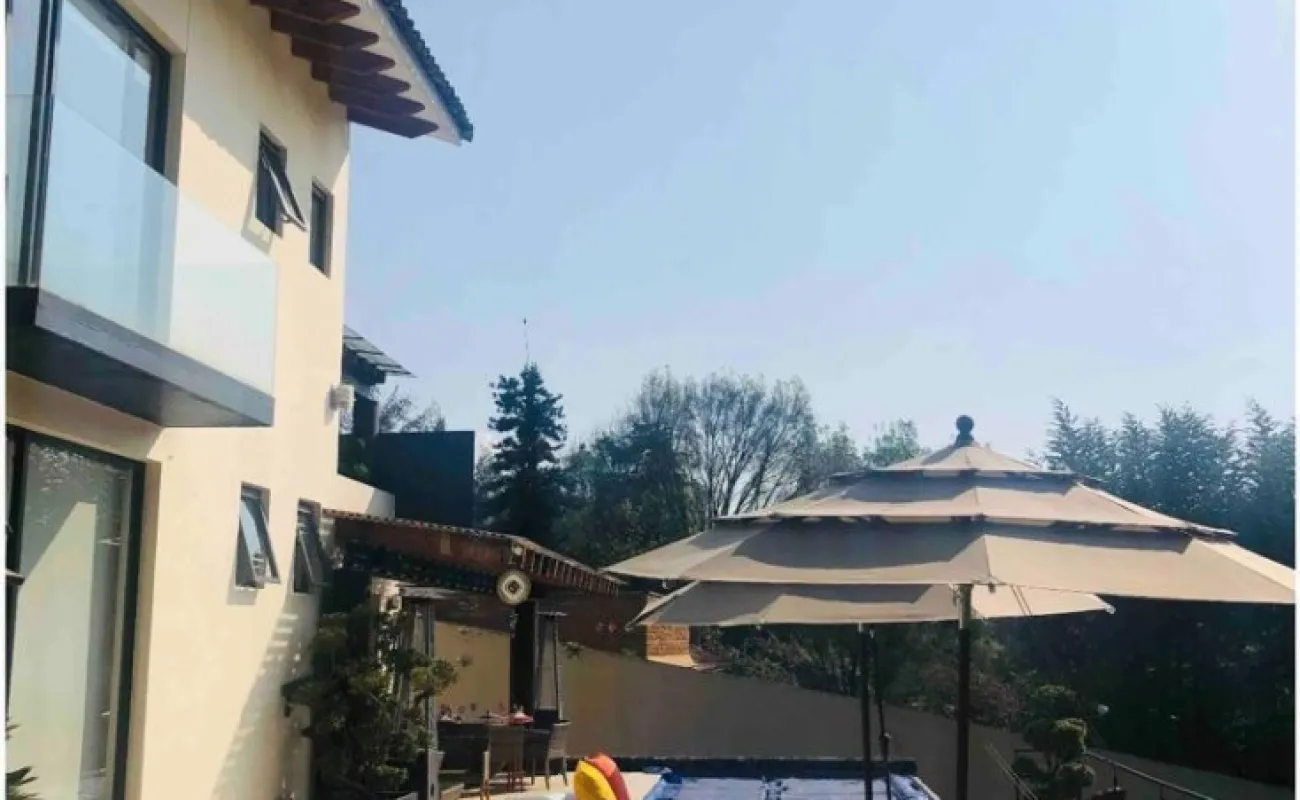 Esta hermosa casa ubicada en Avándaro ofrece un diseño elegante y funcional con un toque de lujo. Con un total de 4 recámaras, cada una diseñada con su propio baño completo para brindar privacidad y comodidad. La recámara principal se distingue por su amplio vestidor, y una terraza con jacuzzi y con unas vistas espectaculares. La planta baja cuenta con un amplio y luminoso espacio que integra la sala y el comedor, ideal para reuniones familiares o con amigos. Además, un acogedor living room con chimenea proporciona un lugar perfecto para relajarse. El cuarto de juegos añade diversión y entretenimiento para todas las edades. Disfruta de momentos de relax y diversión al aire libre en la impresionante terraza equipada con una alberca y jacuzzi para refrescarse, un asador para parrilladas, una mesa de teppanyaki para experiencias culinarias únicas y un horno de leña para preparar deliciosas pizzas. El hermoso jardín de 400 m², con su diseño plano, invita a disfrutar de la naturaleza, y la cancha de pádel ofrece la oportunidad de practicar deporte sin salir de casa. Además de todas estas comodidades, la propiedad cuenta con dos cuartos de servicio integrados en una suite para el personal de apoyo. El espacio para 10 estacionamientos, incluyendo 6 techados. Dos bodegas Vive la experiencia de lujo y confort con impresionantes vistas a las montañas en esta espectacular casa en Avándaro. ¡Una oportunidad única para disfrutar de un estilo de vida exclusivo!