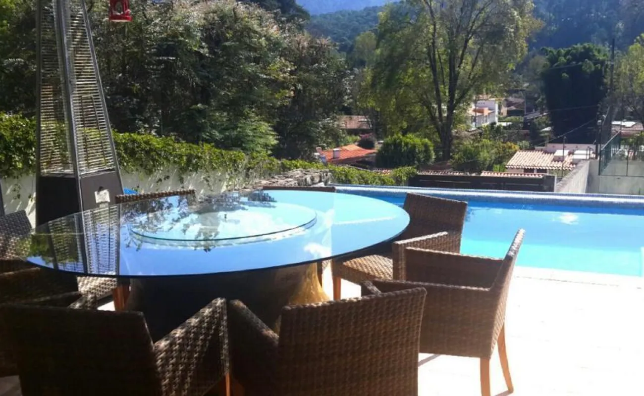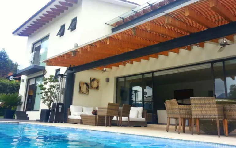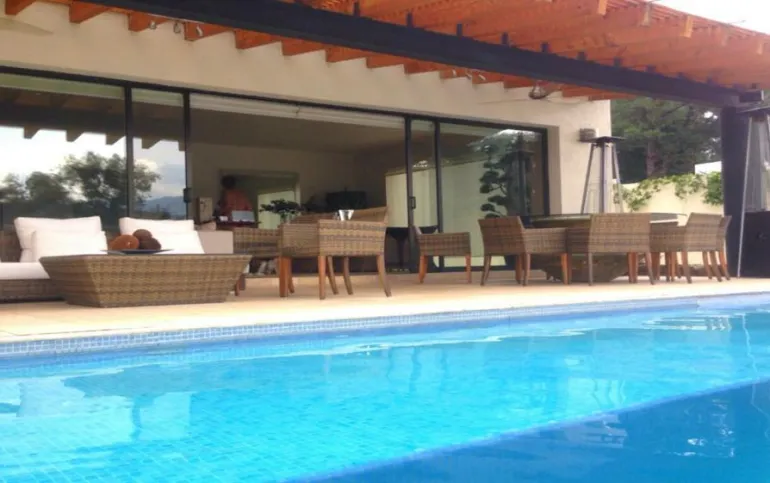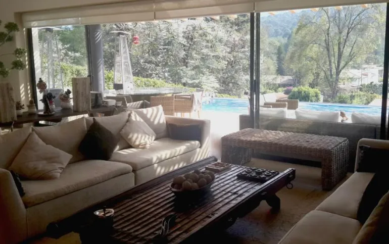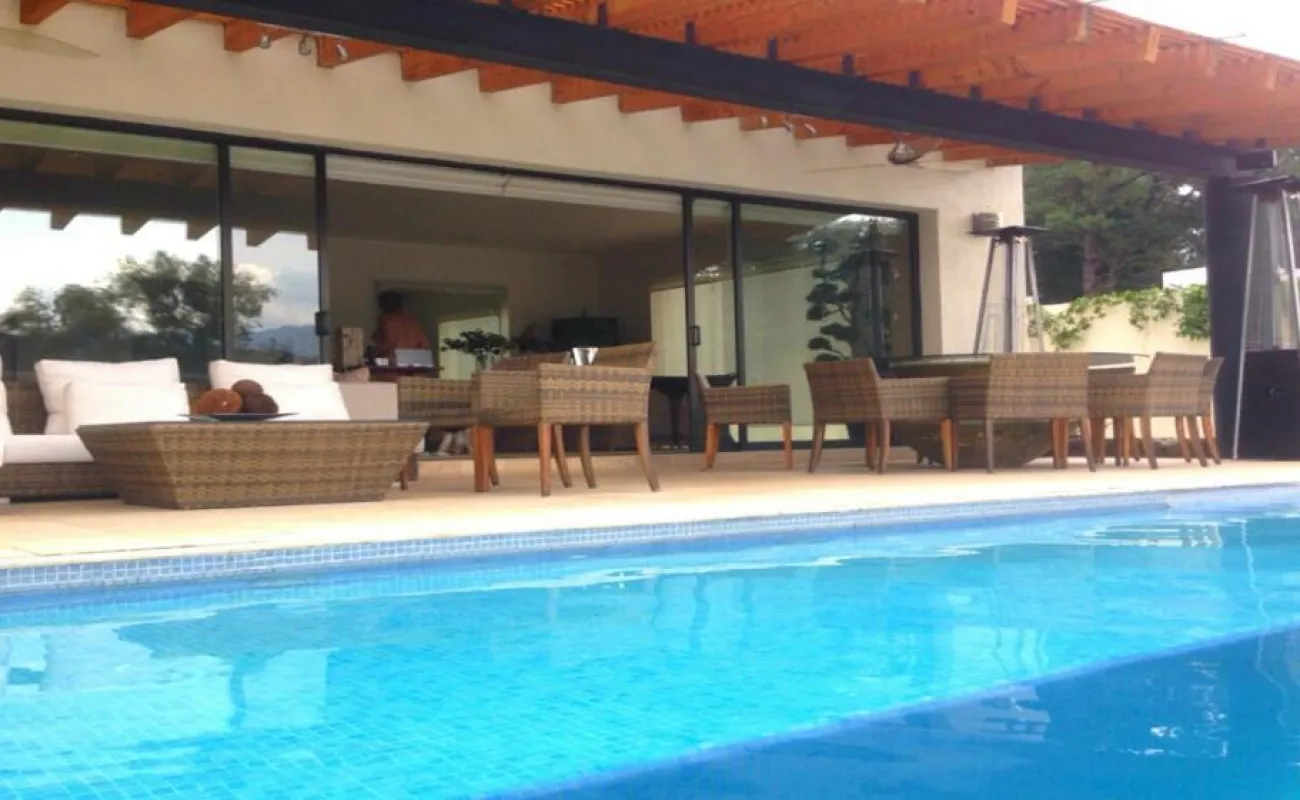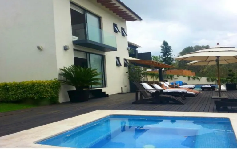 Esta hermosa casa ubicada en Avándaro ofrece un diseño elegante y funcional con un toque de lujo. Con un total de 4 recámaras, cada una diseñada con su propio baño completo para brindar privacidad y comodidad. La recámara principal se distingue por su amplio vestidor, y una terraza con jacuzzi y con unas vistas espectaculares. La planta baja cuenta con un amplio y luminoso espacio que integra la sala y el comedor, ideal para reuniones familiares o con amigos. Además, un acogedor living room con chimenea proporciona un lugar perfecto para relajarse. El cuarto de juegos añade diversión y entretenimiento para todas las edades. Disfruta de momentos de relax y diversión al aire libre en la impresionante terraza equipada con una alberca y jacuzzi para refrescarse, un asador para parrilladas, una mesa de teppanyaki para experiencias culinarias únicas y un horno de leña para preparar deliciosas pizzas. El hermoso jardín de 400 m², con su diseño plano, invita a disfrutar de la naturaleza, y la cancha de pádel ofrece la oportunidad de practicar deporte sin salir de casa. Además de todas estas comodidades, la propiedad cuenta con dos cuartos de servicio integrados en una suite para el personal de apoyo. El espacio para 10 estacionamientos, incluyendo 6 techados. Dos bodegas Vive la experiencia de lujo y confort con impresionantes vistas a las montañas en esta espectacular casa en Avándaro. ¡Una oportunidad única para disfrutar de un estilo de vida exclusivo!