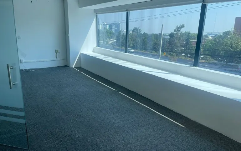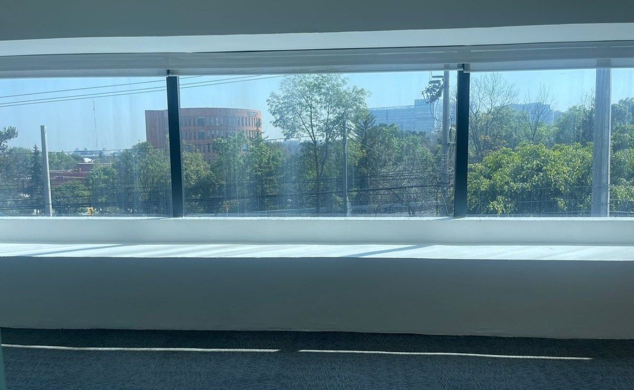 Oficina exterior frente a la Ibero de Santa Fe, muy iluminada y con amplios espacios.
