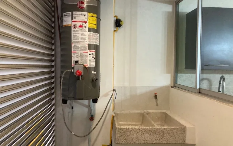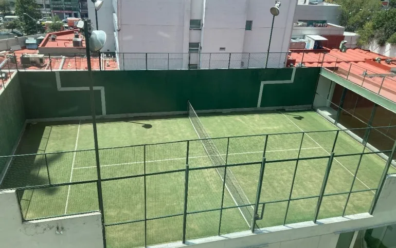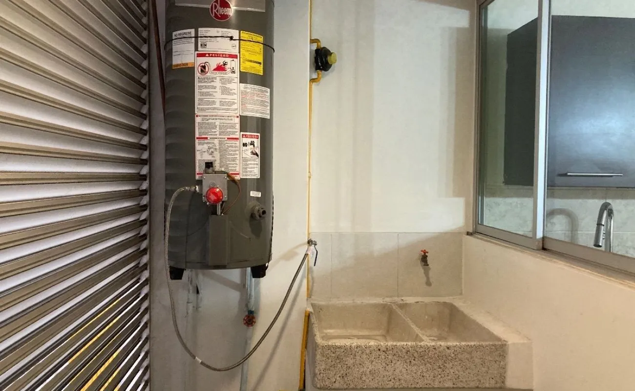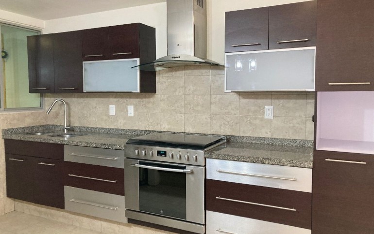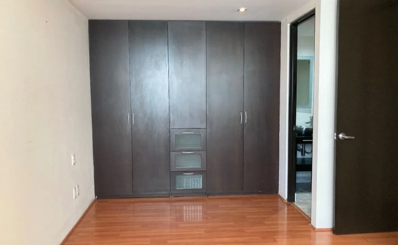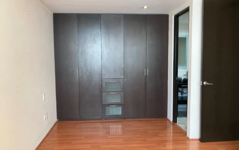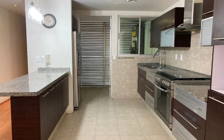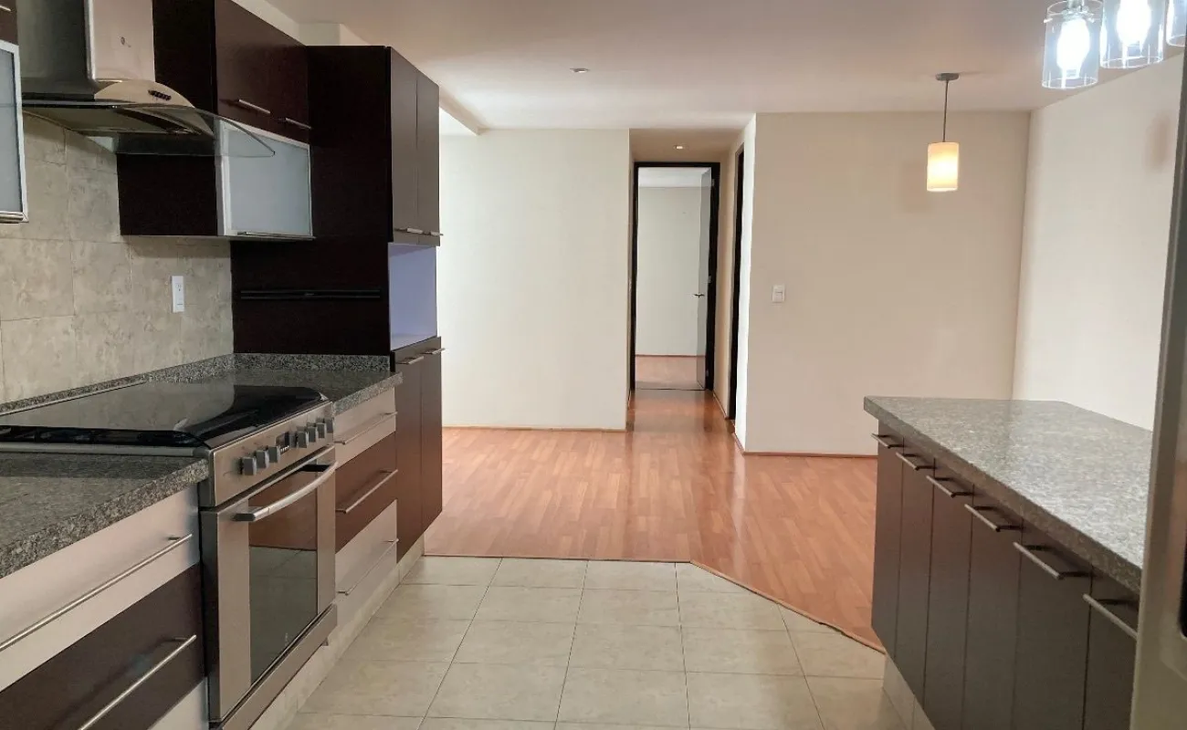 Departamento de 100m2, dos recámaras, dos baños, 2 estacionamientos con elevador. Cocina integral incluye refrigerador. Área de lavado. Gas natural, piso 8. Mantenimiento incluido