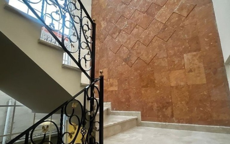 Escaleras de mármol con barandal de hierro forjado