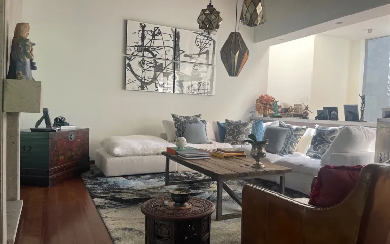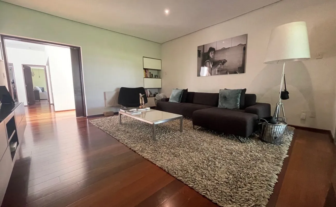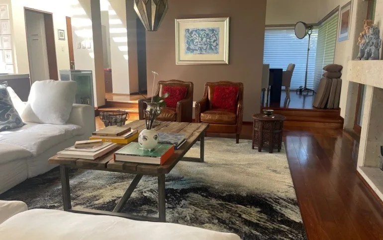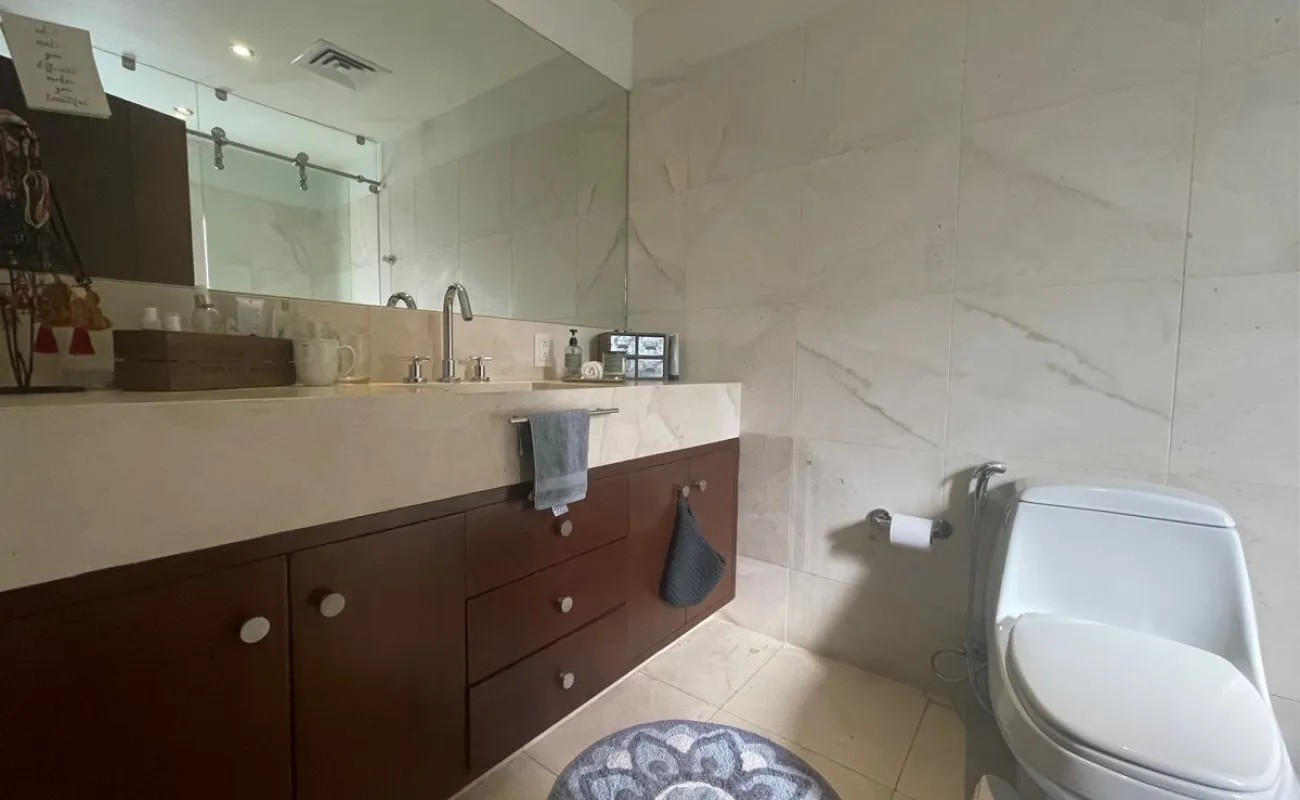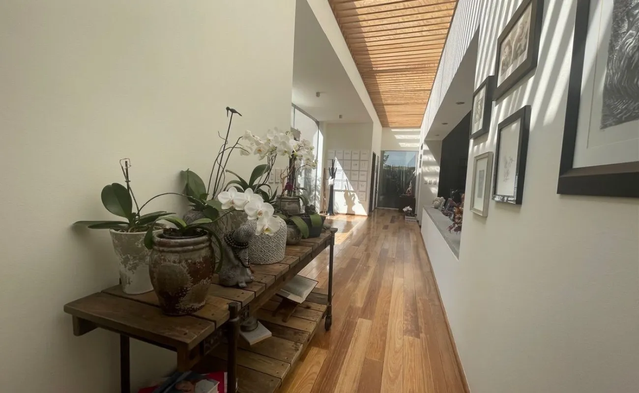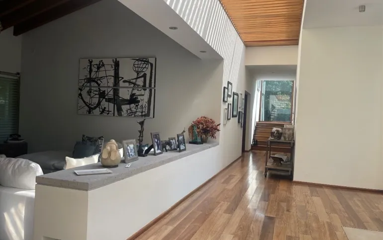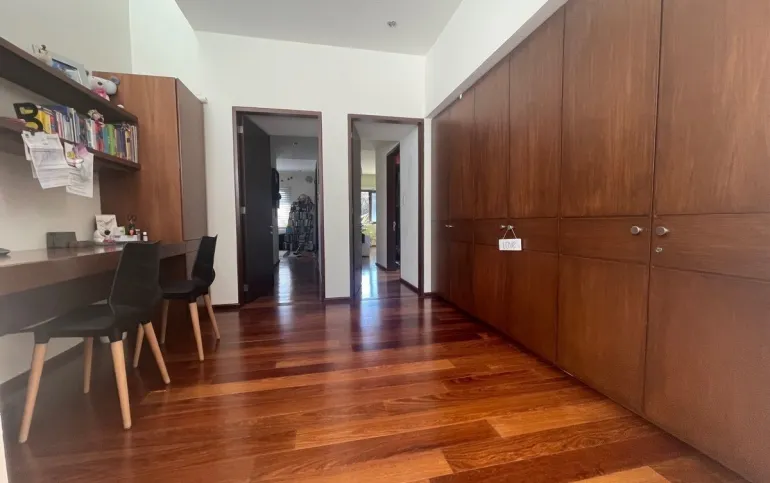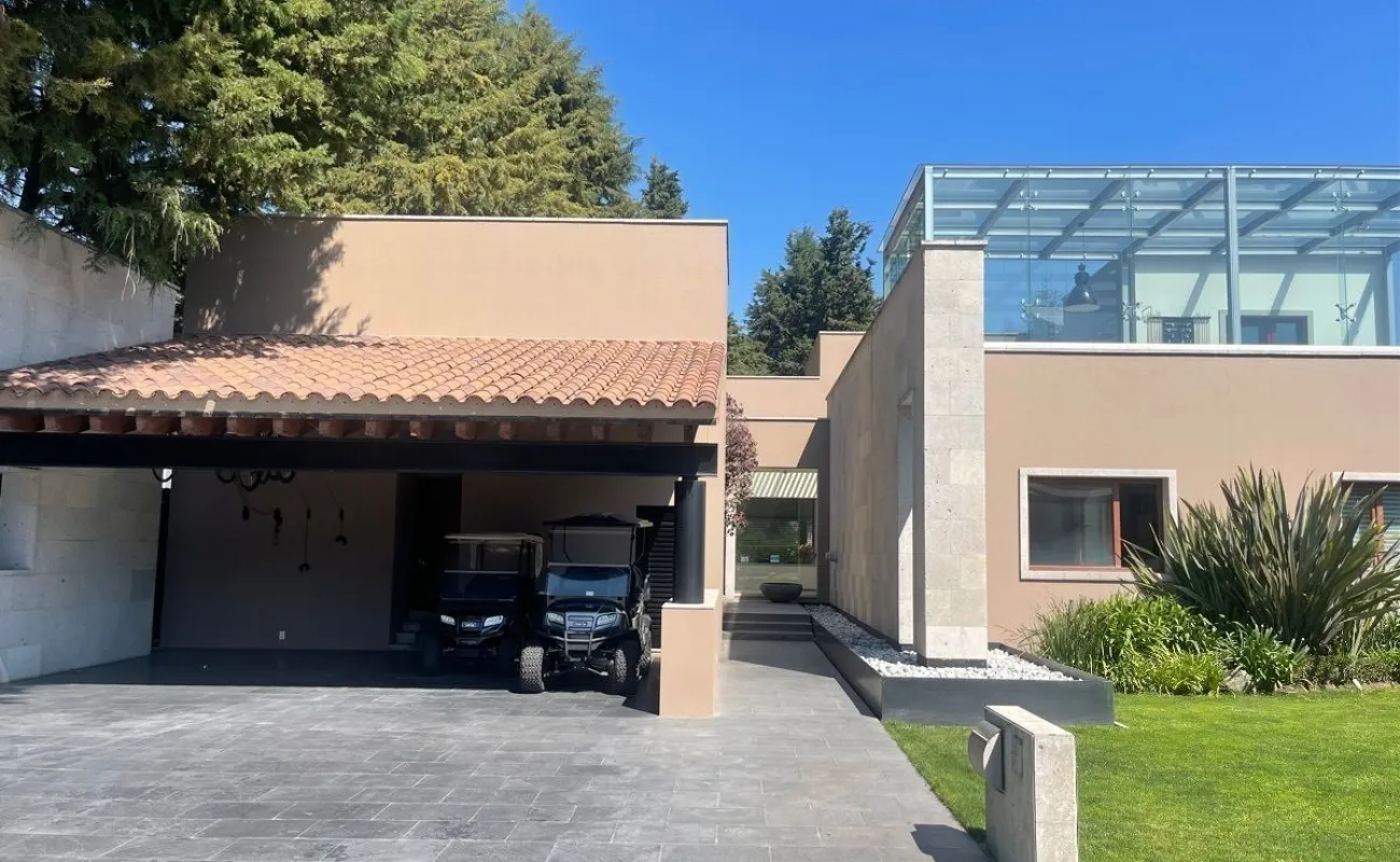 calefacción hidrónica, riego por aspersión, Jardín con pasto ingles, acabados en mármol y cantera, pisos de ingeniería, canceleria de importación, techos inclinados con vigas y tarimas de madera