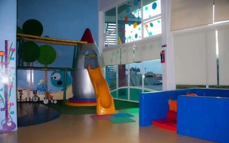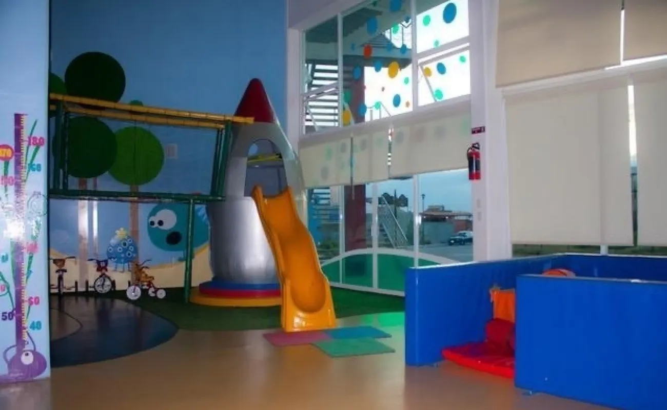 Juegos para todas las edades, toboganes, puente colgante, muros para escalar, pistas para triciclos, área para bebes, salita de cine y mucho más.