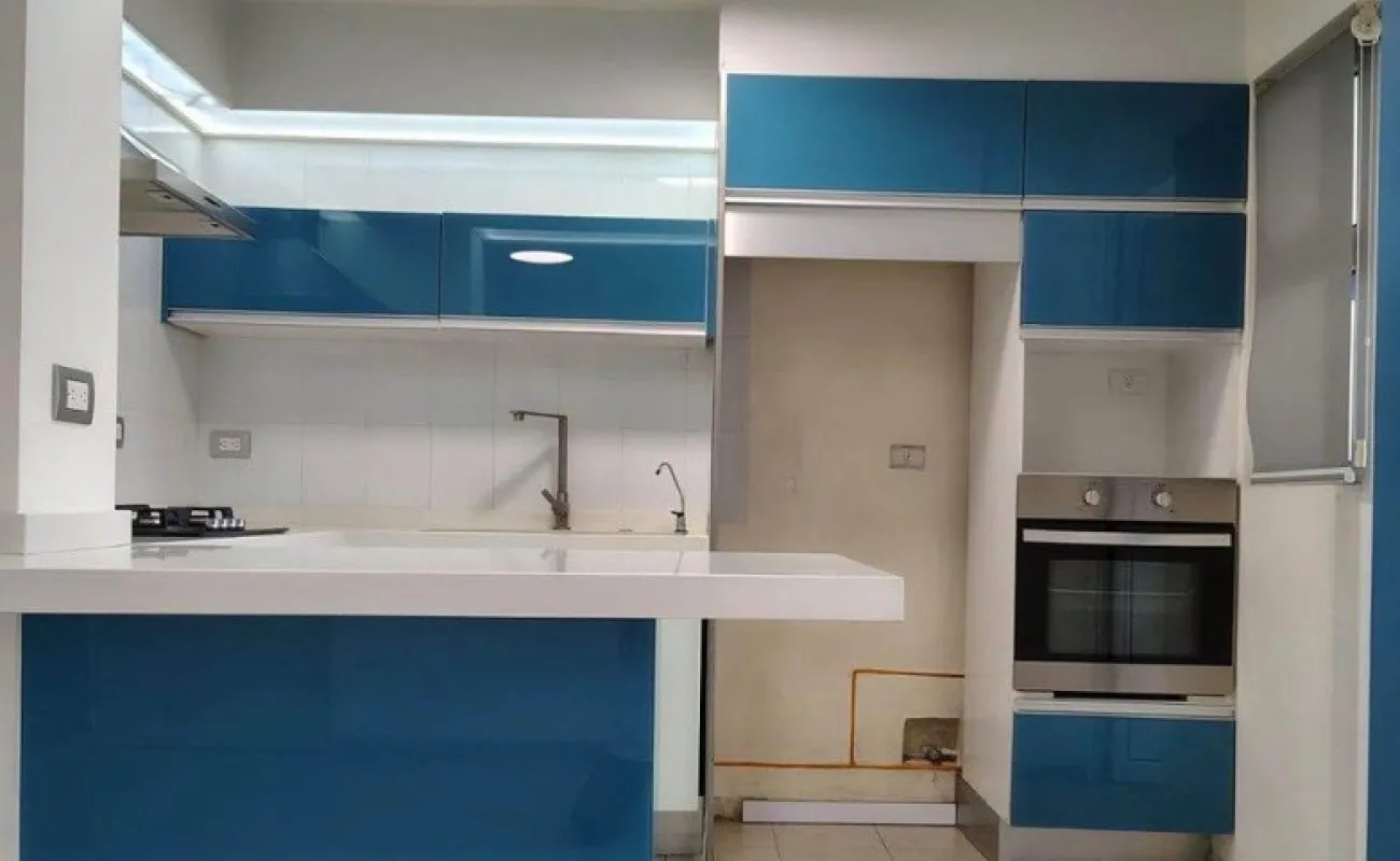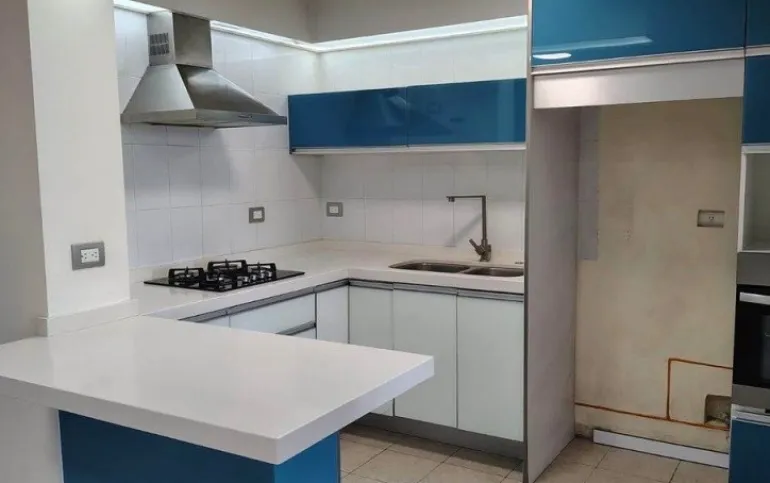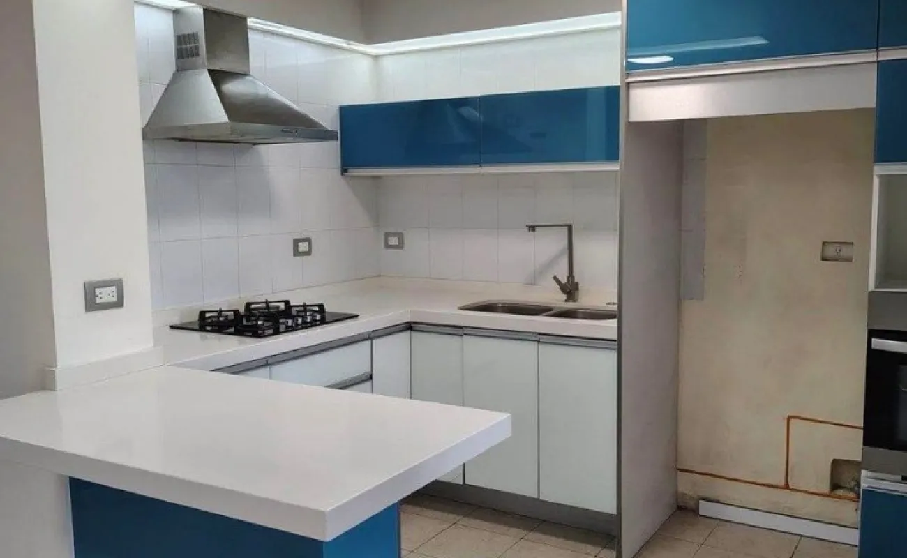 Cocina abierta con barra de cuarzo