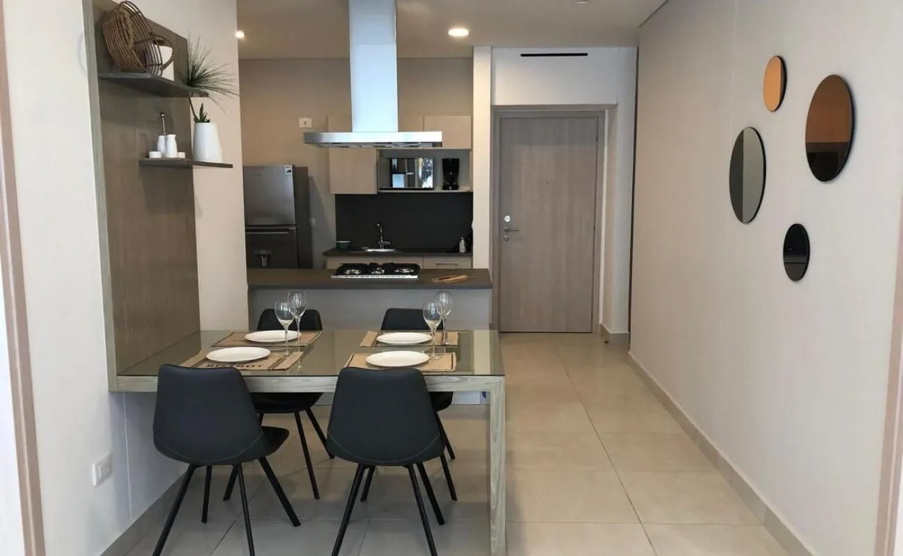 Se renta departamento muy iluminado, amueblado y equipado de 83 mts cuenta con 2 recamaras, la principal con vestidor y baño completo, la secundaria con closet y baño completo, baño de visitas, estancia, cocina abierta, cuarto lavado y 2 cajones de estacionamiento.