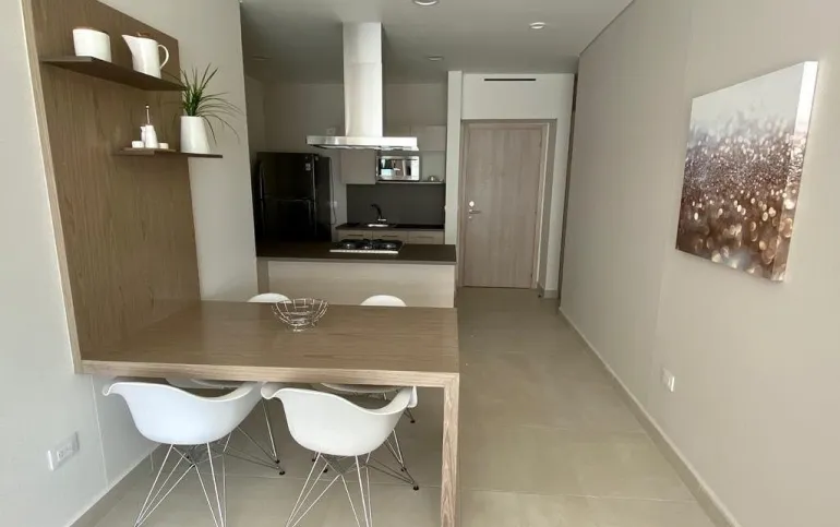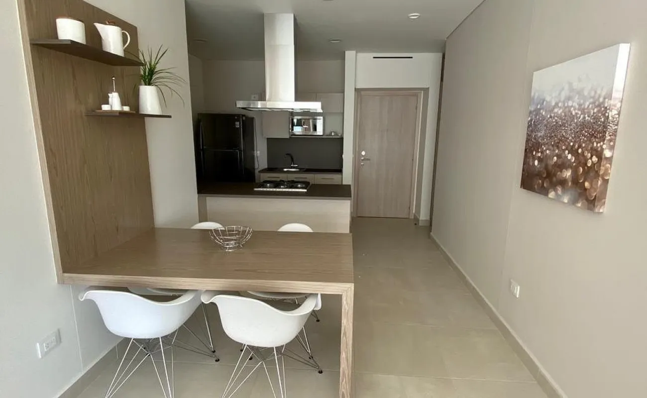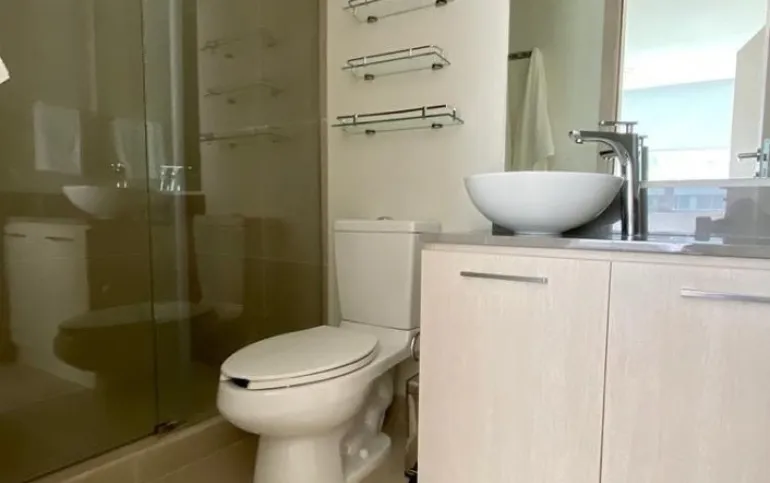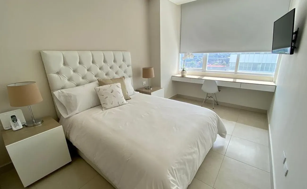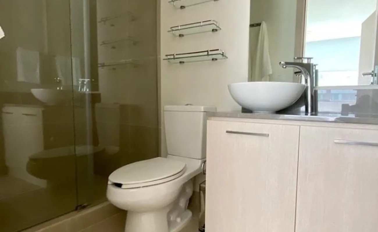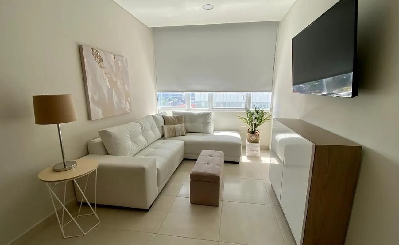 Se renta departamento muy iluminado, amueblado y equipado de 83 mts cuenta con 2 recamaras, la principal con vestidor y baño completo, la secundaria con closet y baño completo, baño de visitas, estancia, cocina abierta, cuarto lavado y 2 cajones de estacionamiento.