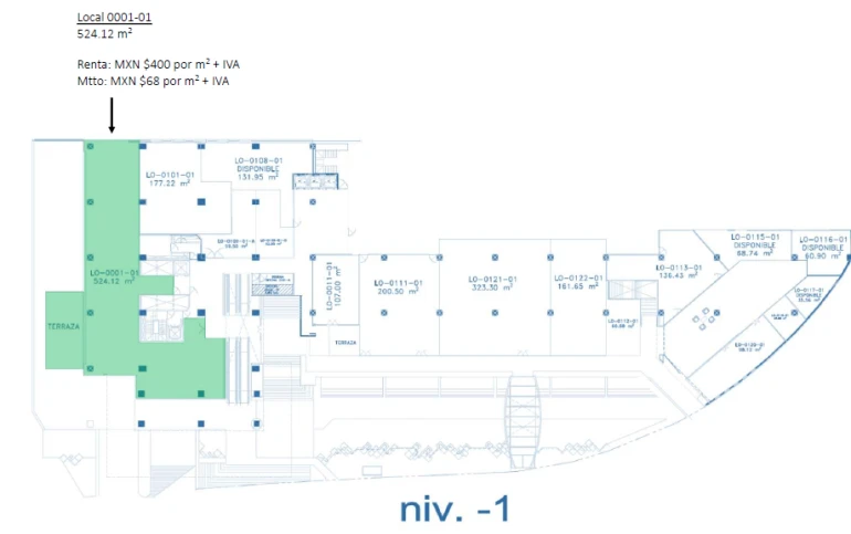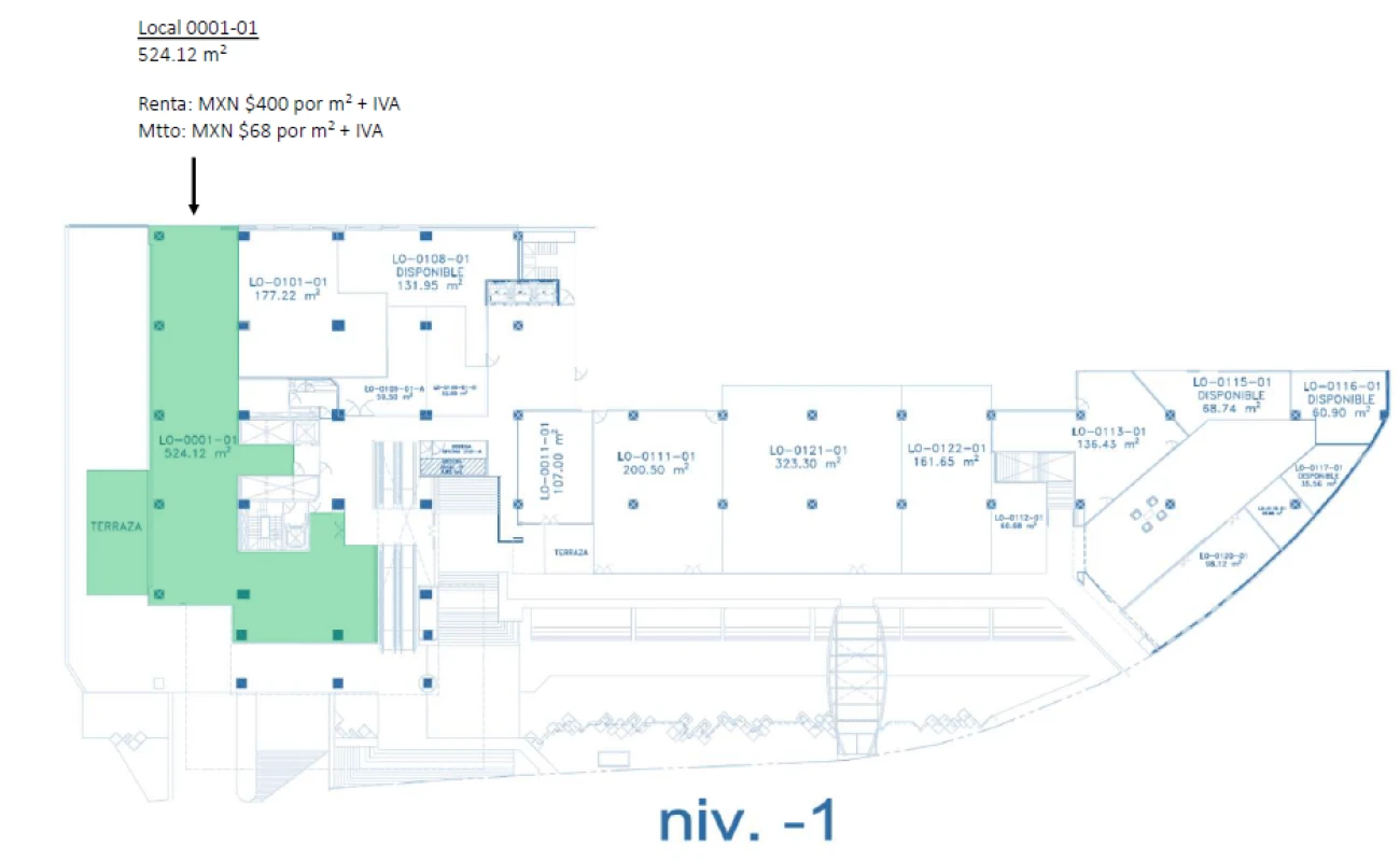 Se renta Local Comercial en Edificio Dimante Santa Fe, Cuajimalpa de Morelos, CDMX, con un área de 524.12 mt2.