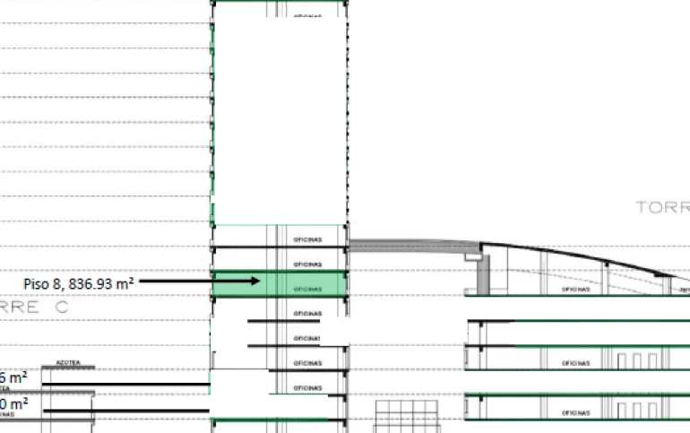 Se renta Oficina en Edificio Dimante Santa Fe, Cuajimalpa de Morelos, CDMX, con un área de 976.22 mt2, en Piso 6 de la Torre B.