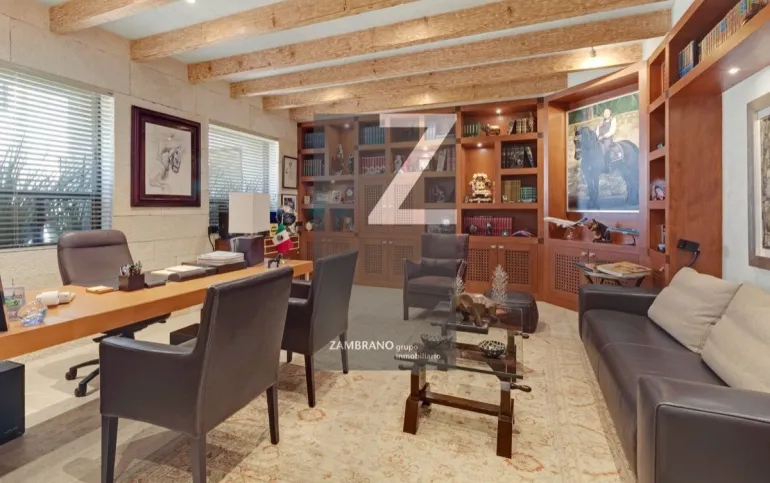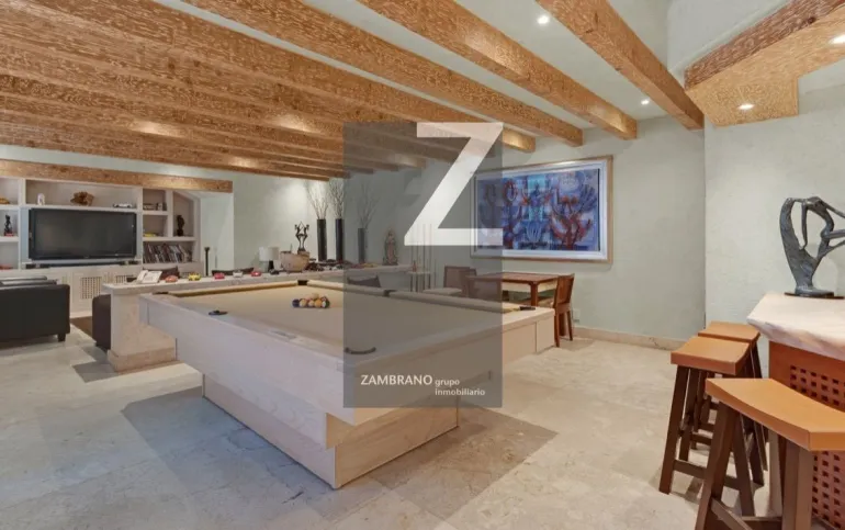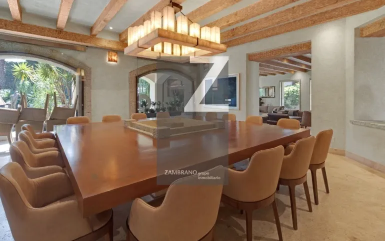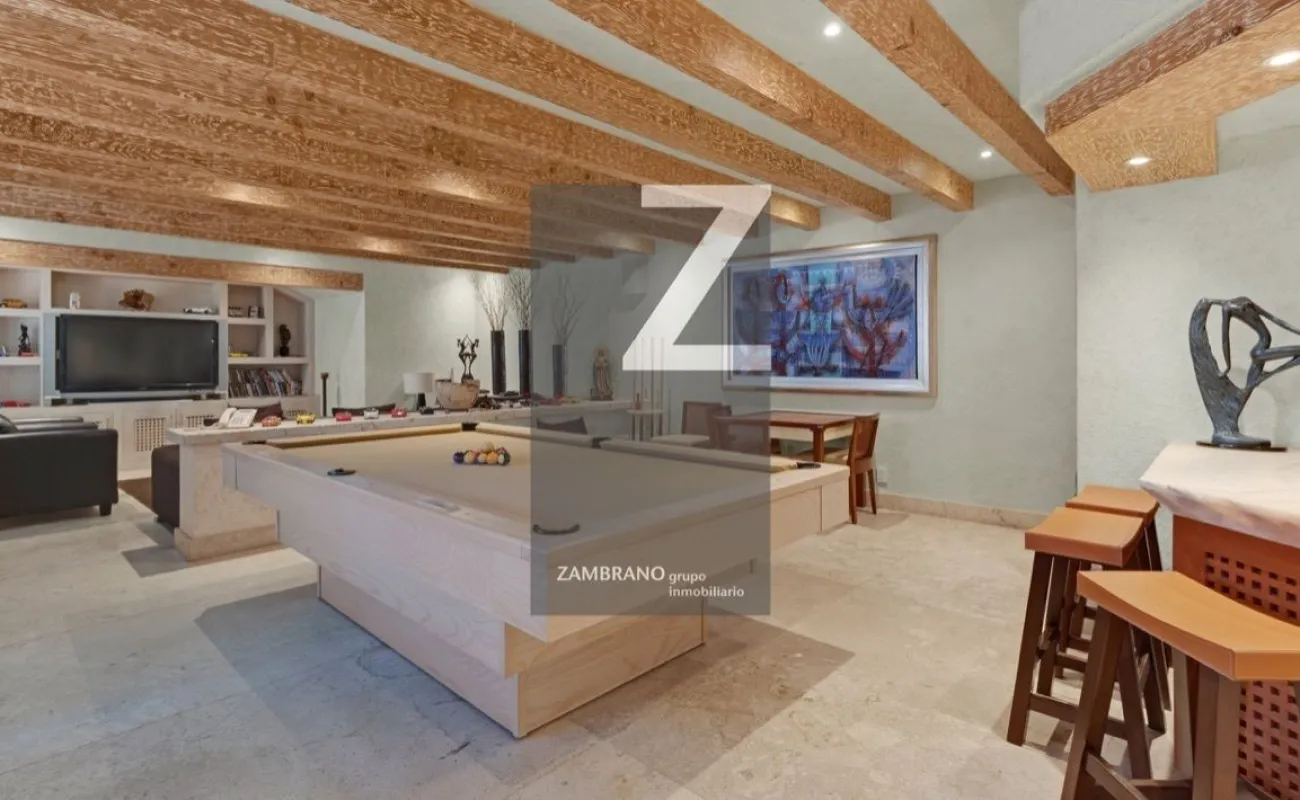 Todas las amenidades con las que una residencia de este tipo debería: oficina con biblioteca, salón de juegos, área de estudio, comedor hasta para 20 personas, asador techado en el jardín, automatización en iluminación, alturas de entrepiso bastante cómodas, espacios para esculturas