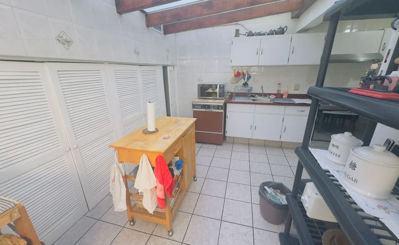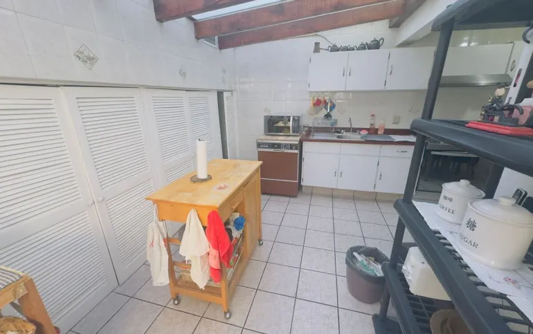 Cocina integral de gran tamaño, equipada con amplias alacenas y espacios de almacenamiento.