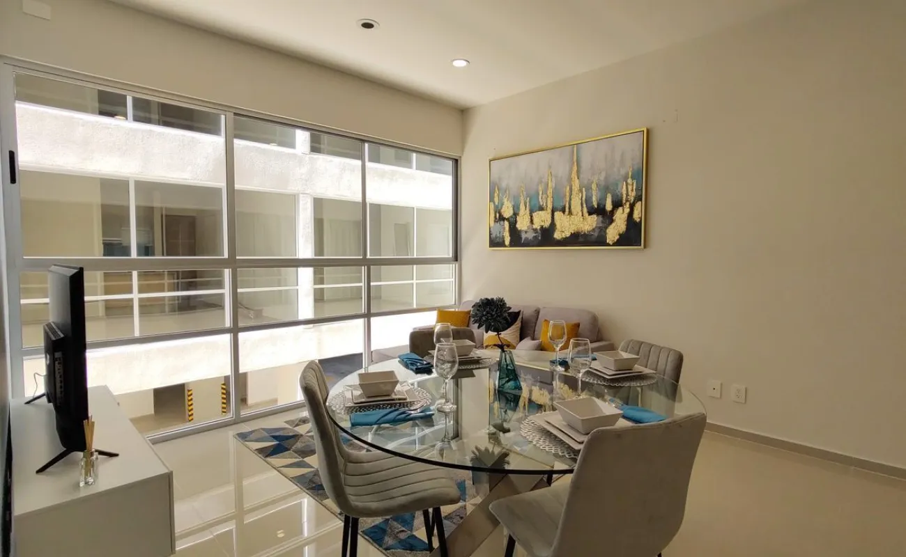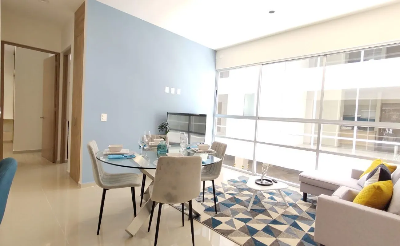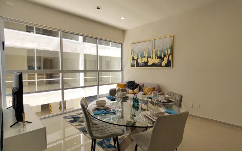 Magnifico desarrollo con departamentos desde 62 a 71 metros cuadrados Sala - comedor Cocina equipada 2 Recámaras con clósets 2 Baños completos NOTA: Estas imágenes son únicamente de carácter ilustrativo. Balcón * Terraza * Esta propiedad es apta para adquirir por medio de créditos bancarios y de otras instituciones financieras. Los gastos de escrituración deberán ser pagados por el comprador y son aproximadamente por un máximo del 10% del valor, dependiendo de la notaría que se elija. Los precios de los inmuebles pueden cambiar sin previo aviso. Si deseas más información de este inmueble puedes comunicarte al 5588485444. Puedes consultar nuestro aviso de privacidad en www.ruzinmobiliaria.mx Si tienes alguna duda o sugerencia contáctanos por medio de nuestra página o bien en [email protected]