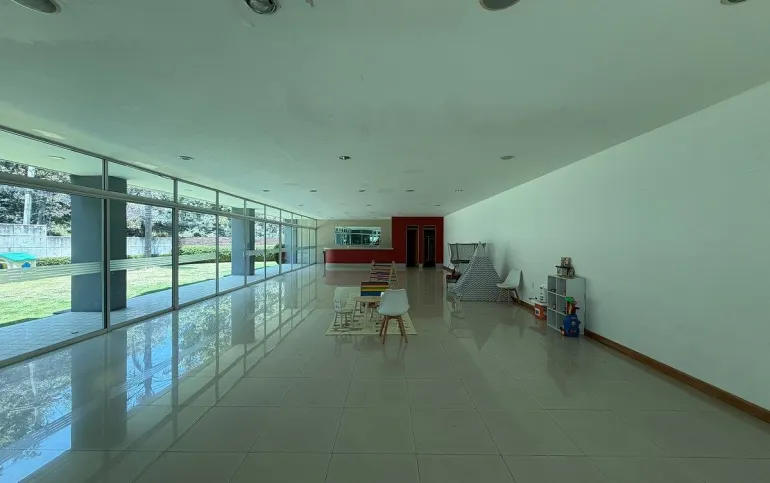 Tiene varias amenidades como salón de eventos, jardines y gimnasio.