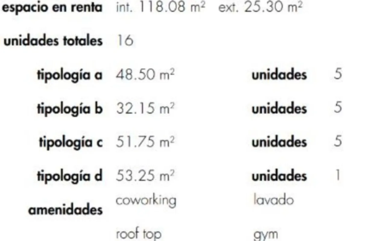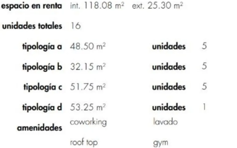 Amenidades: roof top, terraza, coworking, lavado, gym