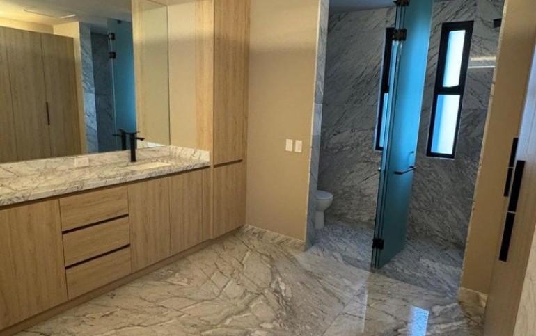 4 baños completos,uno por recámara (y un quinto baño del cuarto de servicio )