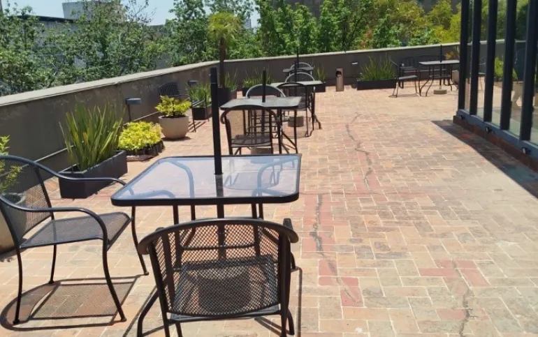 Amenidades como: Sala de juntas para con capacidad de 10 personas con derecho a utilizarlas 4 horas al año y posterior el pago es de $200 por hora,ludoteca , una gran terraza con una vista espectacular, terraza para fumadores, cocineta y baños en cada piso ,la oficina se encuentra en un piso 3.