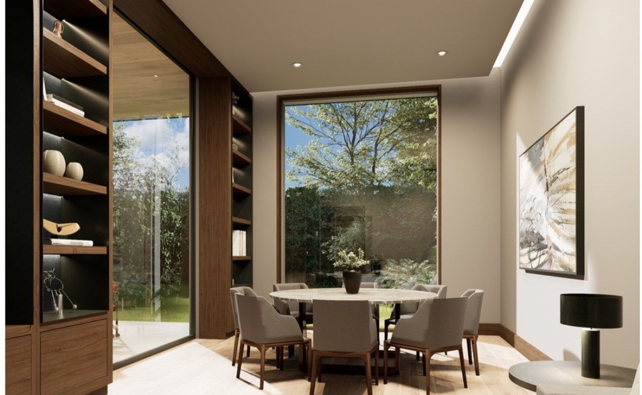 La sala y el comedor se integran a una terraza y al jardín posterior y lateral, lleno de vistas verdes.