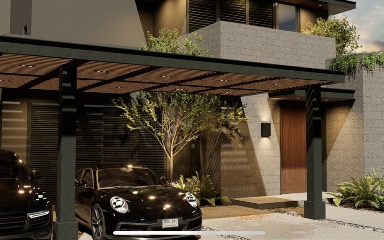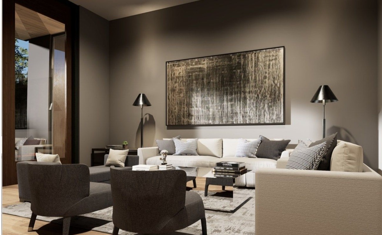 En planta alta se encuentra la recámara principal con sala privada, baño-vestidor y cuarto de pánico.