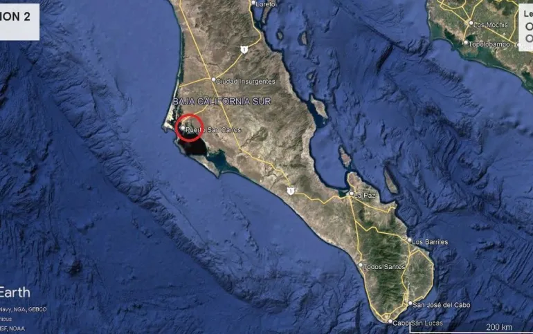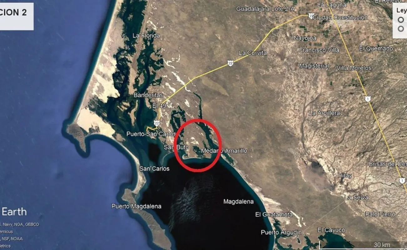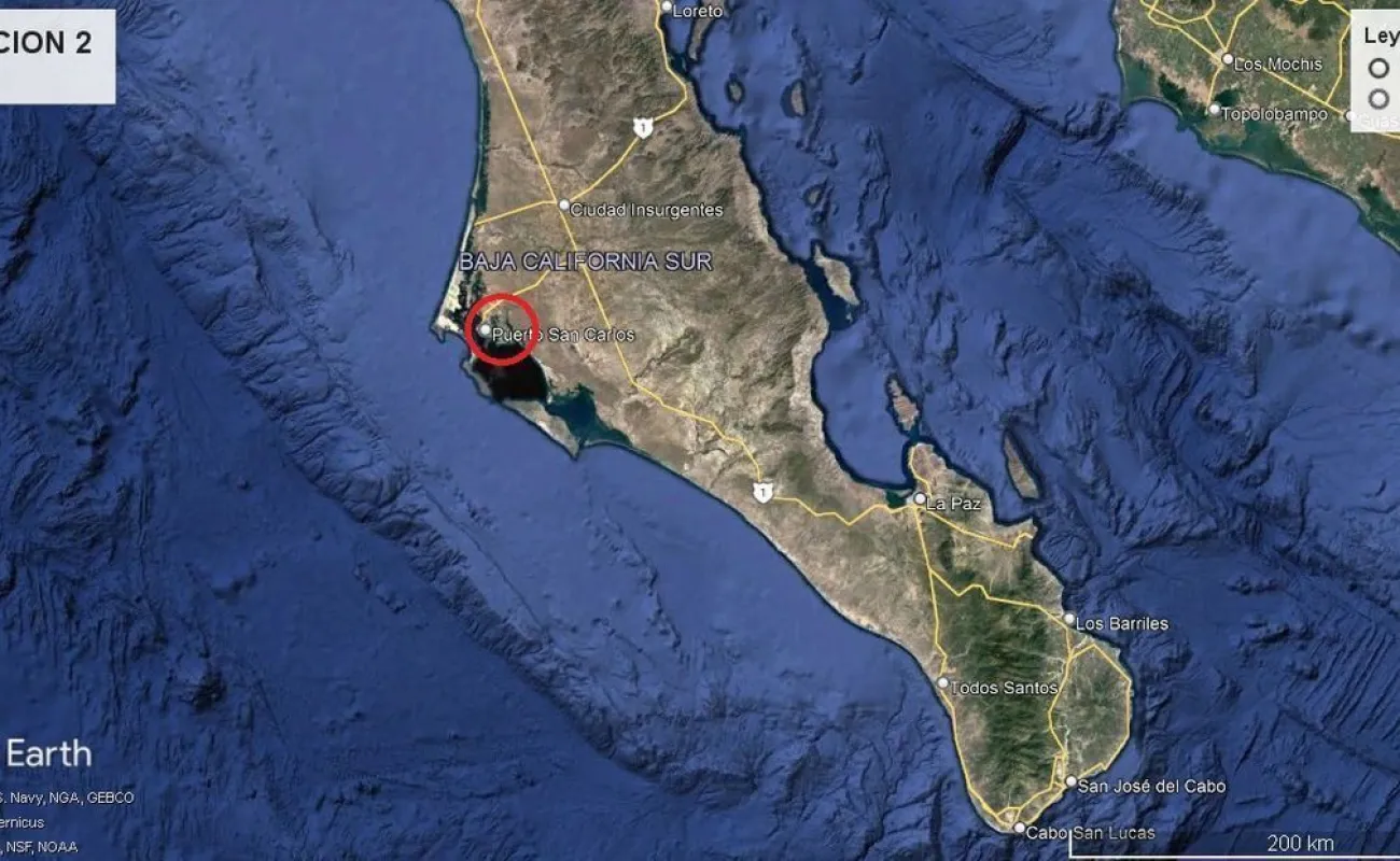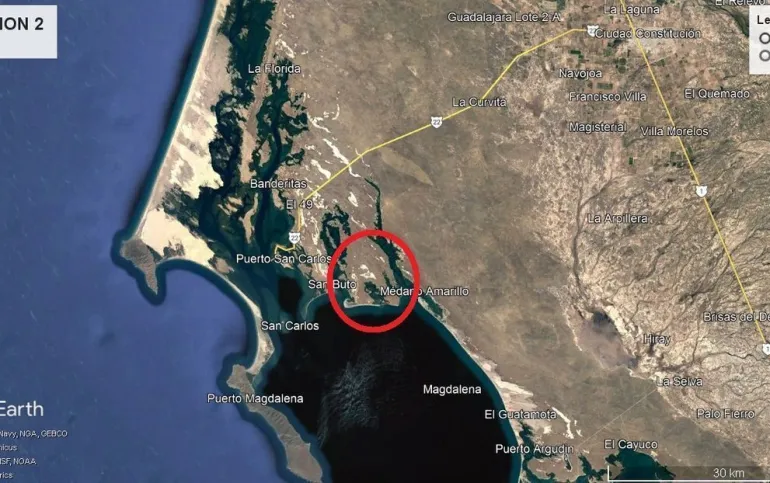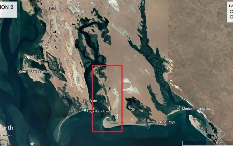 UBICADO EN LA DELEGACIÓN DE PUERTO SAN CARLOS (OCÉANO PACÍFICO), MUNICIPIO DE COMONDÚ, ESTADO DE BAJA CALIFORNIA SUR, A DOS HORAS Y MEDIA DE LA CIUDAD DE LA PAZ POR CARRETERA TRANSPENINSULAR Y A 45 MINUTOS DE LA CABECERA MUNICIPAL DE CIUDAD CONSTITUCIÓN, TOMANDO EL CRUCERO HACIA PUERTO SAN CARLOS.