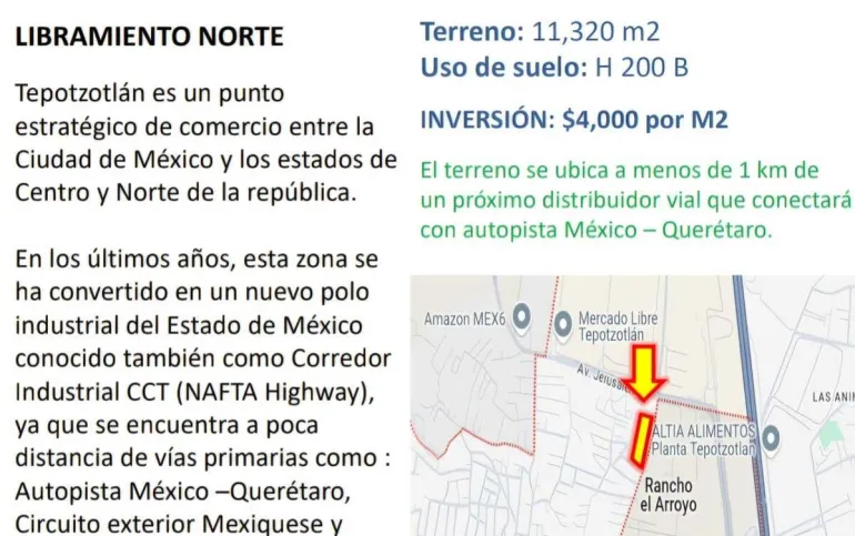 Terreno de gran tamaño ubicado en una de las zonas con mayor crecimiento industrial y logístico en Tepotzotlán. Ideal para desarrollo industrial, almacenes, parques logísticos, centros de distribución, bodegas, uso comercial o proyectos habitacionales dependiendo del uso permitido en la zona.