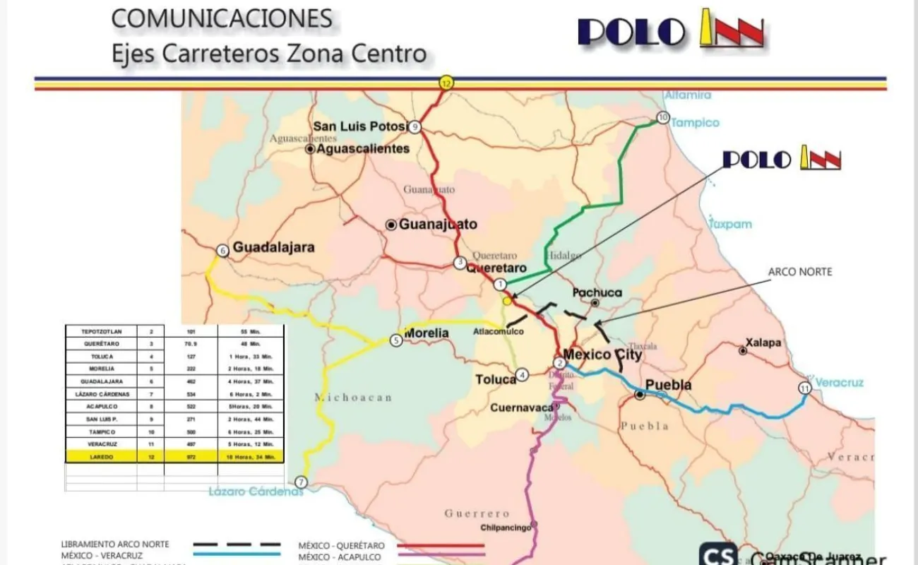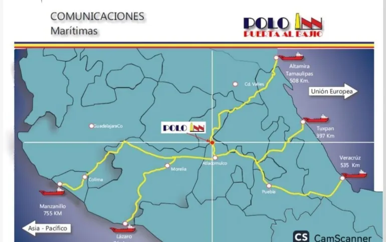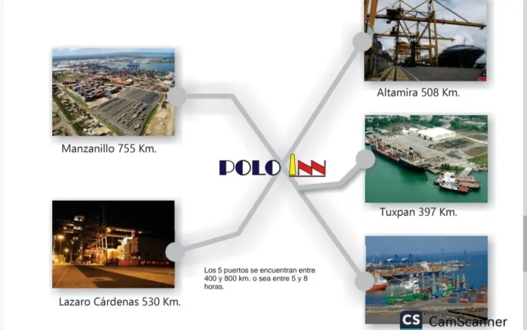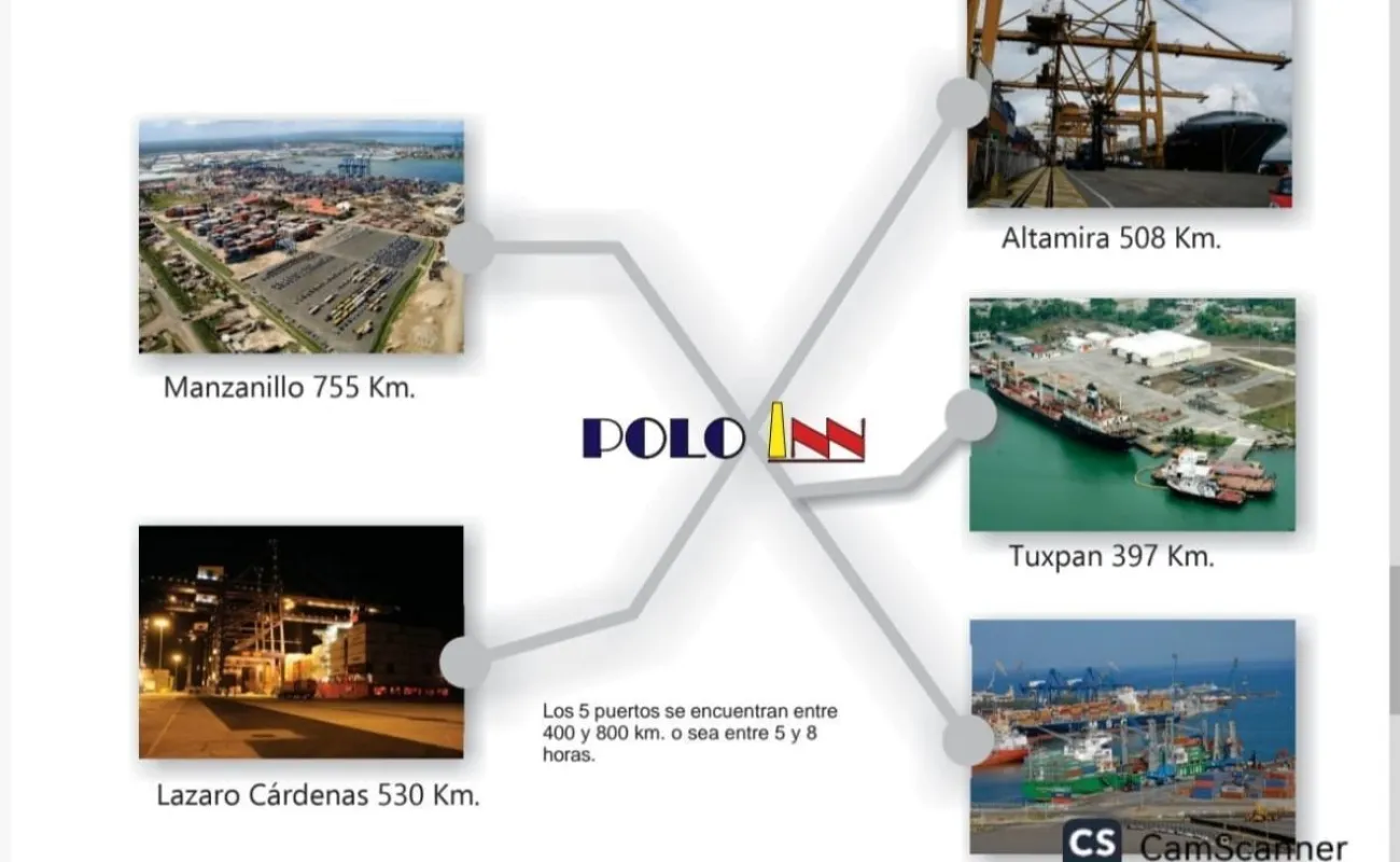 * Conectividad por carretera con los Puertos de Lázaro Cárdenas, Manzanillo, Altamira, Tuxpan y Veracruz.