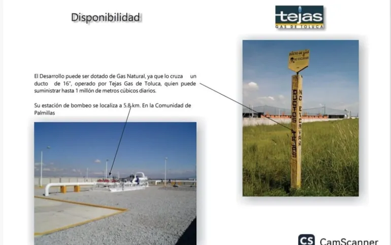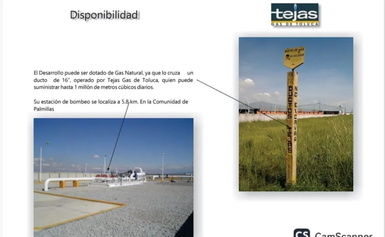 Gas natural * Al predio lo cruza una línea de Gas Natural, atendida por la transportadora y comercializadora Tejas Gas de Toluca, con