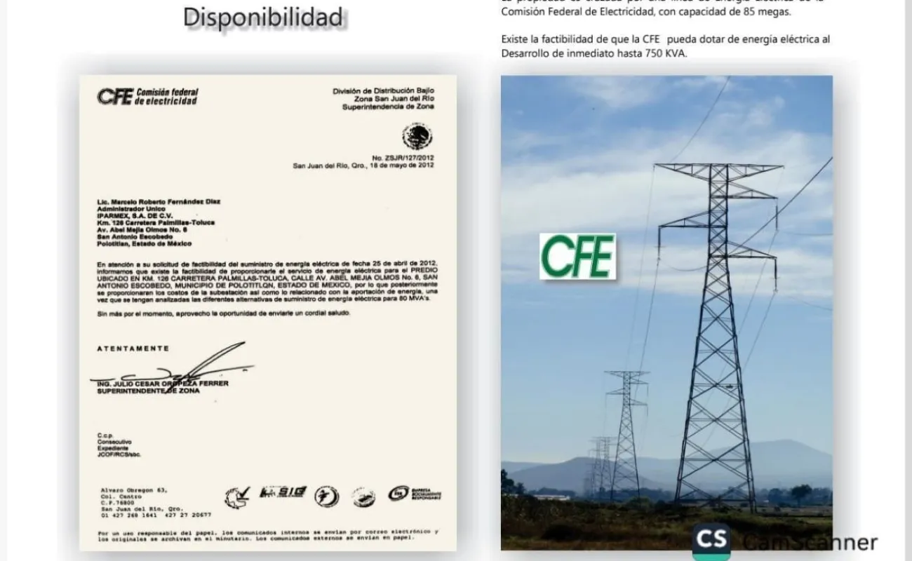 eléctrica por parte de la Comisión Federal de Electricidad. Con una disponibilidad inmediata de hasta 720 KVA