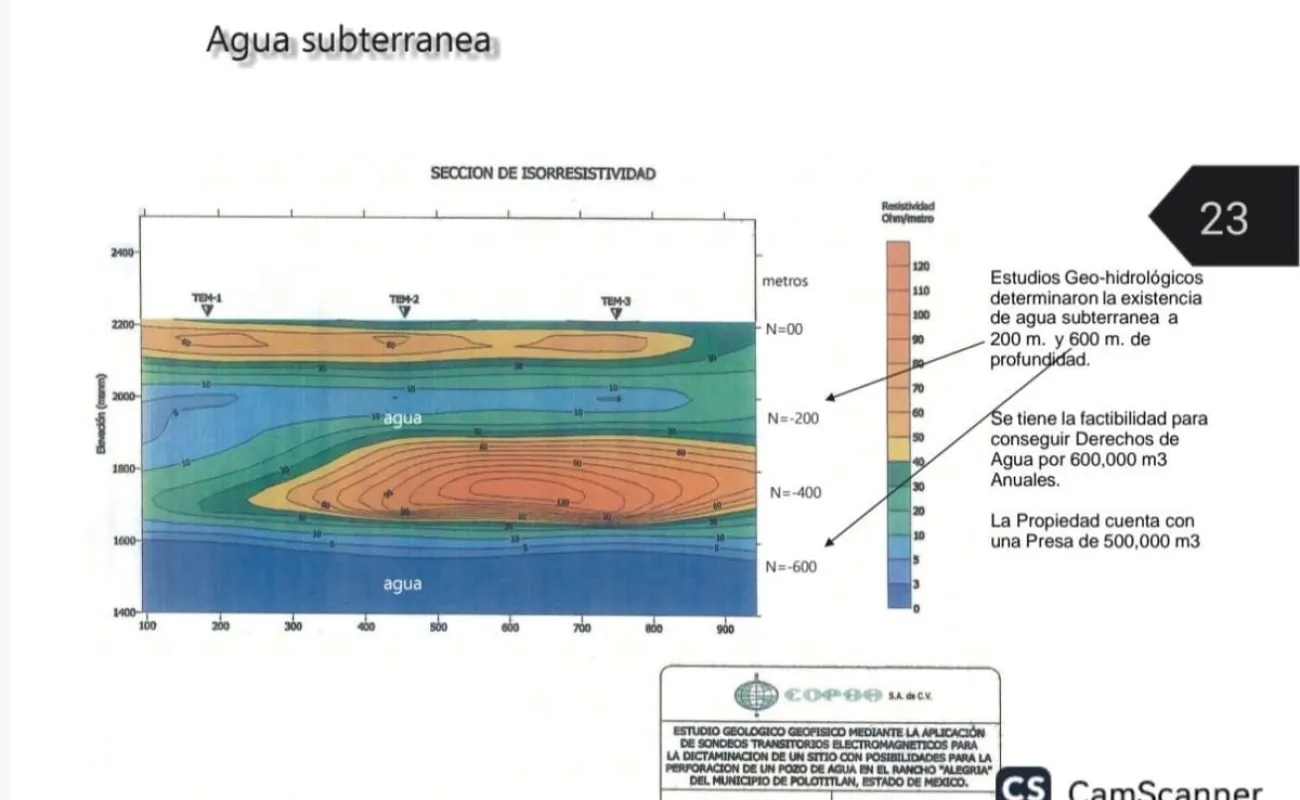 * Contamos con estudios Geo-Hidrológicos que determinan la existencia de agua a 200 y 600 m. de profundidad