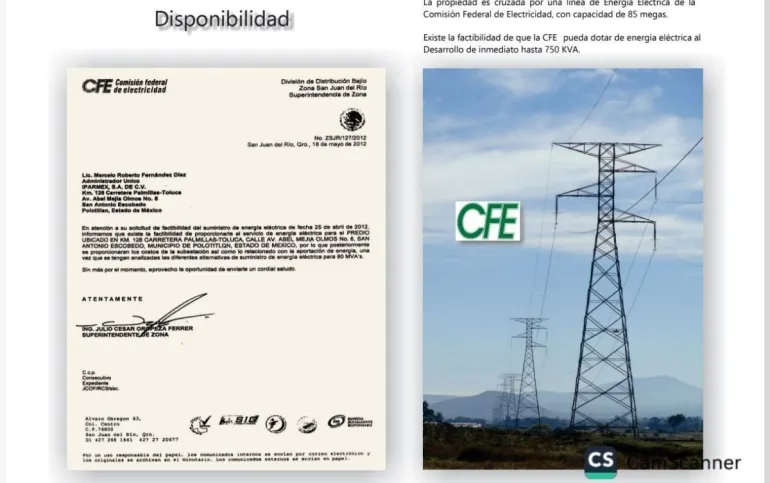 * Al predio lo cruza una línea de alta tensión de 85 Megas. Se cuenta con factibilidad para el suministro de energía