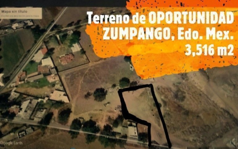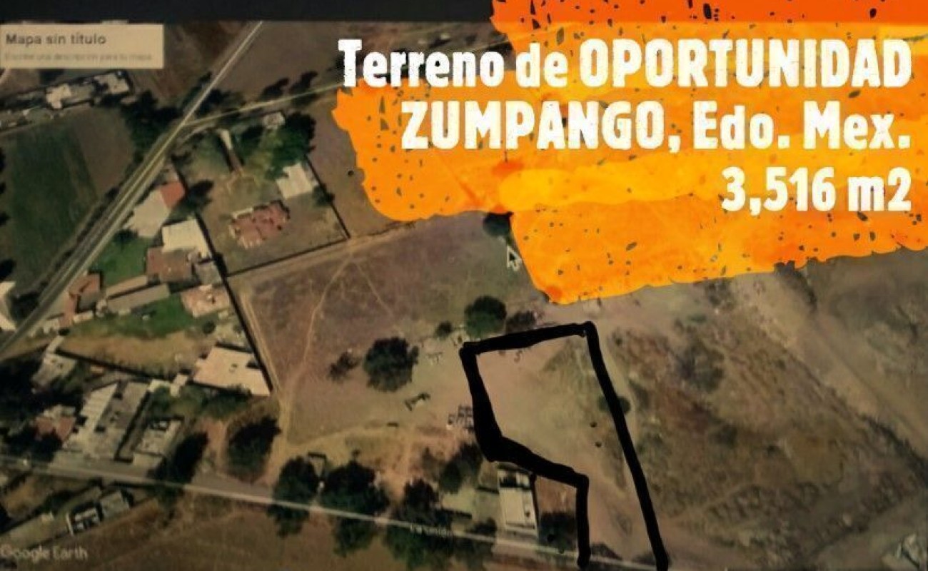 VENTA DE TERRENO EN ZUMPANGO, ESTADO DE MÉXICO 3,516 m2 VENTA DE TERRENO EN ZUMPANGO, ESTADO DE MÉXICO 3,516 m2, A 10 MIN. SANTA LUCIA Aprovecha esta Oportunidad de COMPRAR este Gran Terreno a precio de avalúo del año 2019 que se encuentra a unos minutos del centro de Zumpango y del Aeropuerto Santa Lucia. Terreno a solo 10 minutos del centro de Zumpango. Con vías de acceso, como: Camino Zumpango – Tizayuca al Norte, Camino a San Bartolo al Sur. Alrededor cuentan con servicios de agua potable, alcantarillado, cableado eléctrico y calles de pavimento y terracería........SUPER PRECIO DE VENTA $ 2,639,000.00 pesos