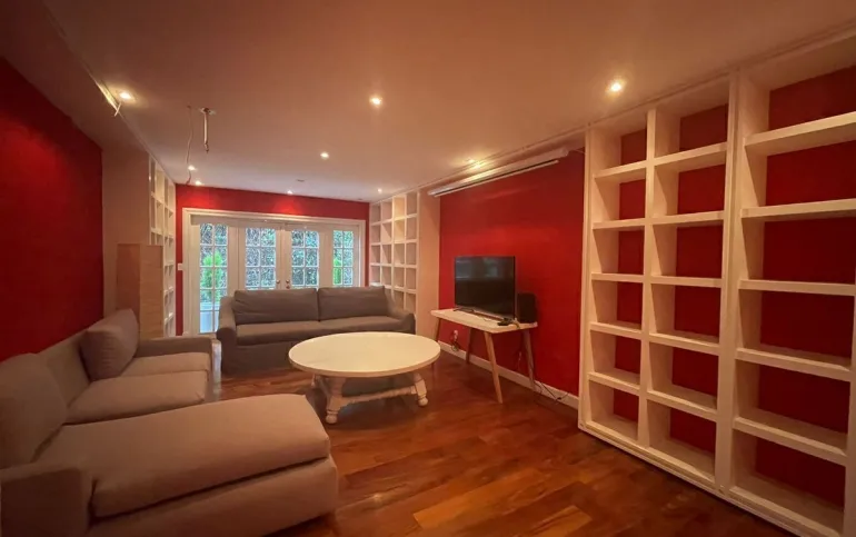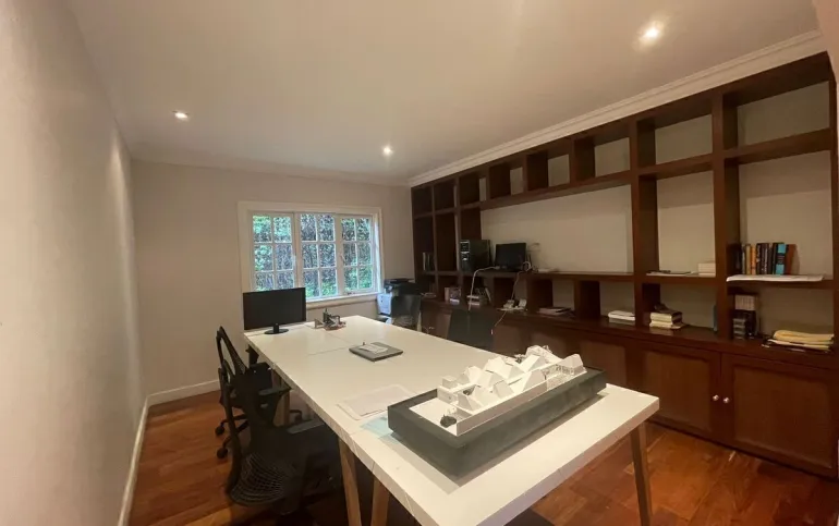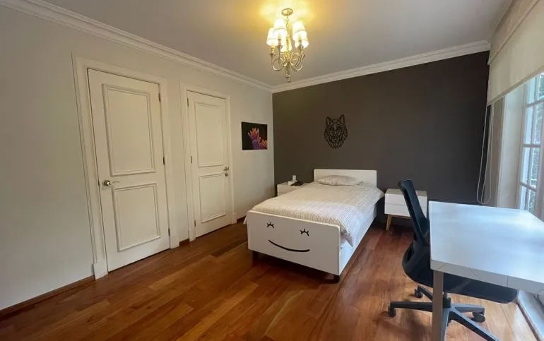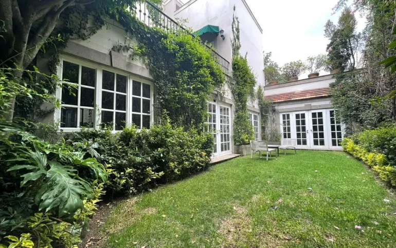 Casa con vigilancia, acabados de lujo con bonito jardín. Enorme lavandería, dos cuartos de servicio, dos estudios o otra recámara. Enorme cava de vinos, sala de TV y family