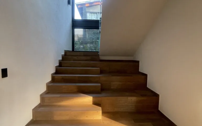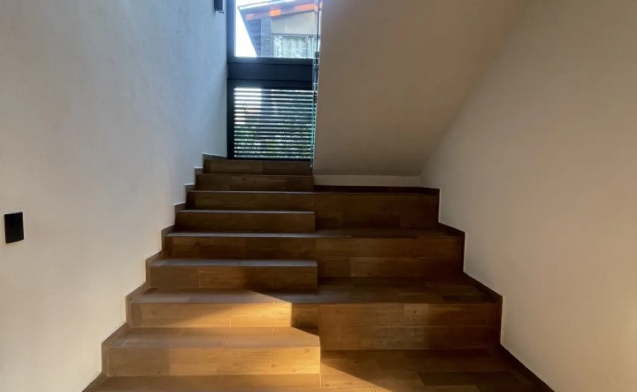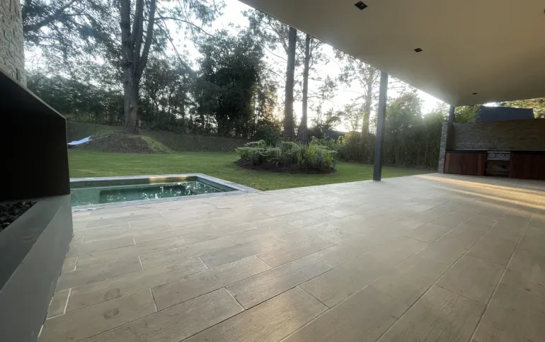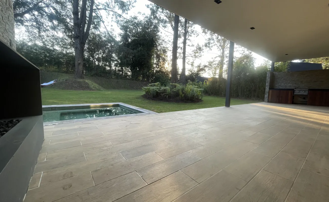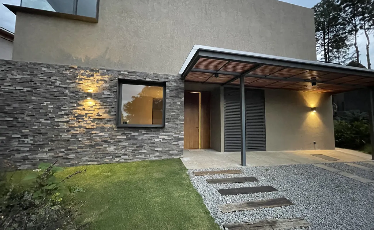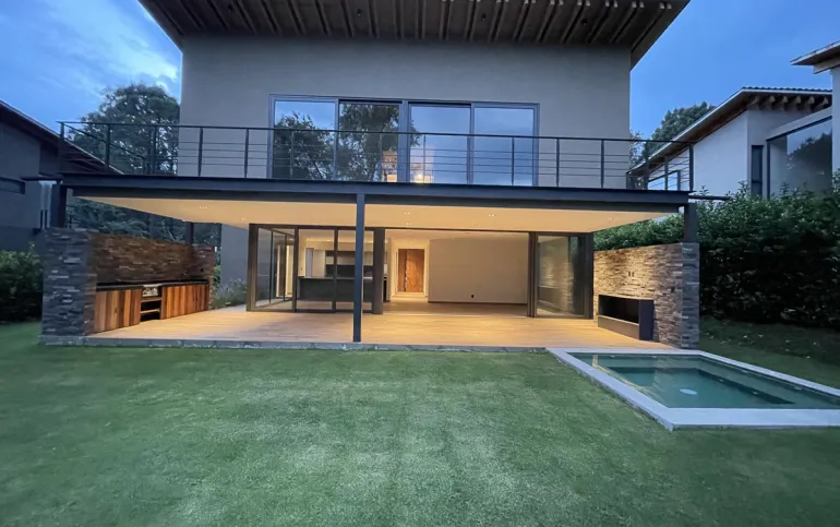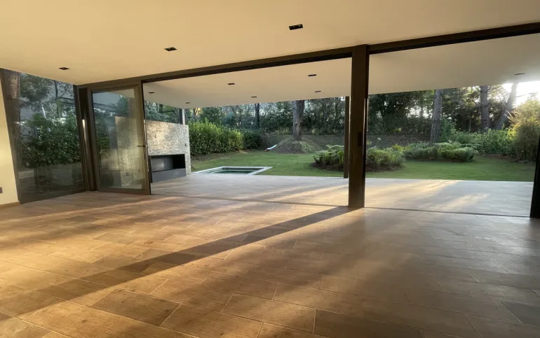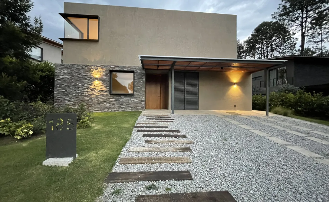 En planta alta 4 recamaras todas con baño y vestidor, techos con excelente altura y con vigas de madera. Dos de ellas con un balcón grande con vista al bosque, otra de ellas con terracita.