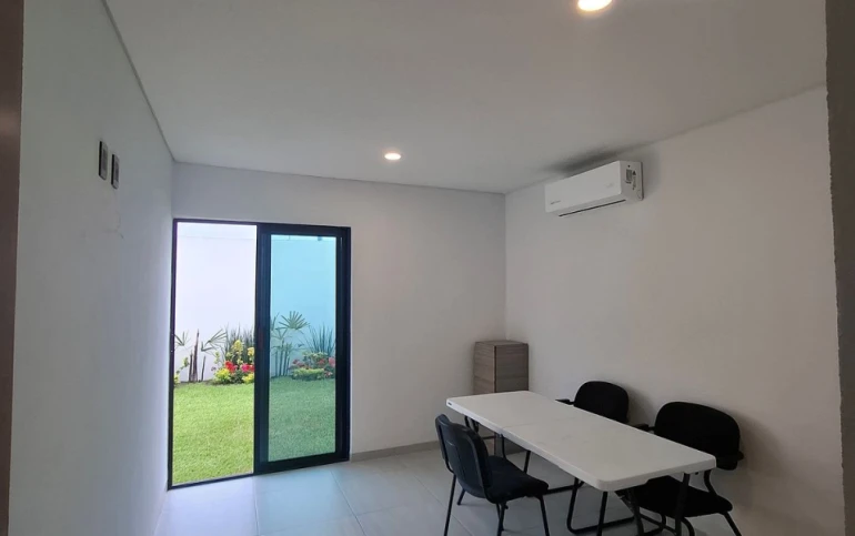 En planta baja encontrarás un ambiente abierto y acogedor con sala-comedor, cocina integral equipada con barra de granito, parrilla, campana y tarja, además de una recámara o estudio, baño completo, patio de servicio, jardín trasero y una agradable terraza que amplía tu espacio de convivencia.