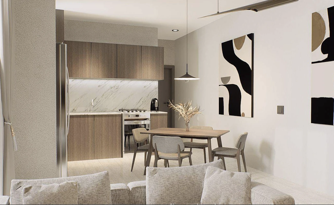 Área social: Una acogedora estancia de sala y comedor, el lugar perfecto para relajarte tras un día en la ciudad.