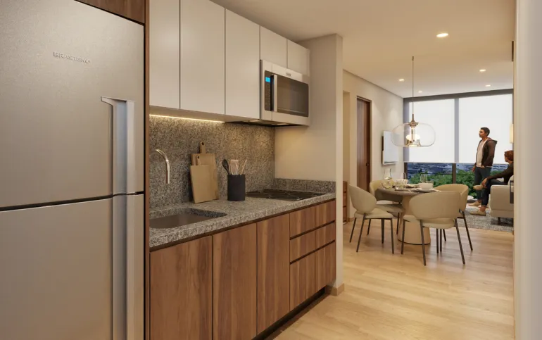 El departamento se entrega diciembre 2026, con precio competitivo . Con cafetería, terrazas al aire libre, espacios de coworking, estacionamiento para bicicletas, vigilancia con caseta 24/7.