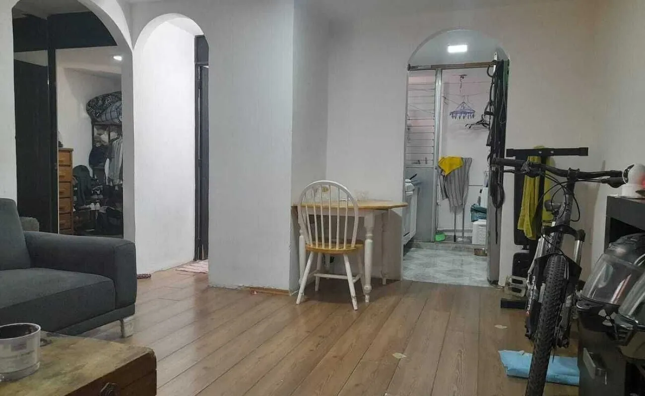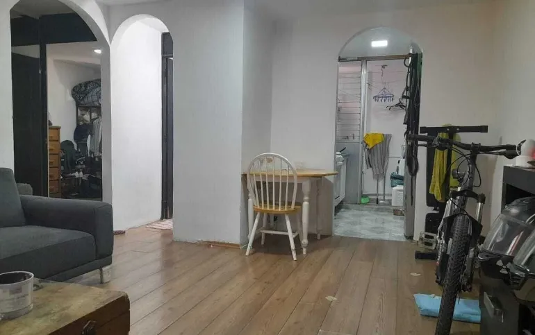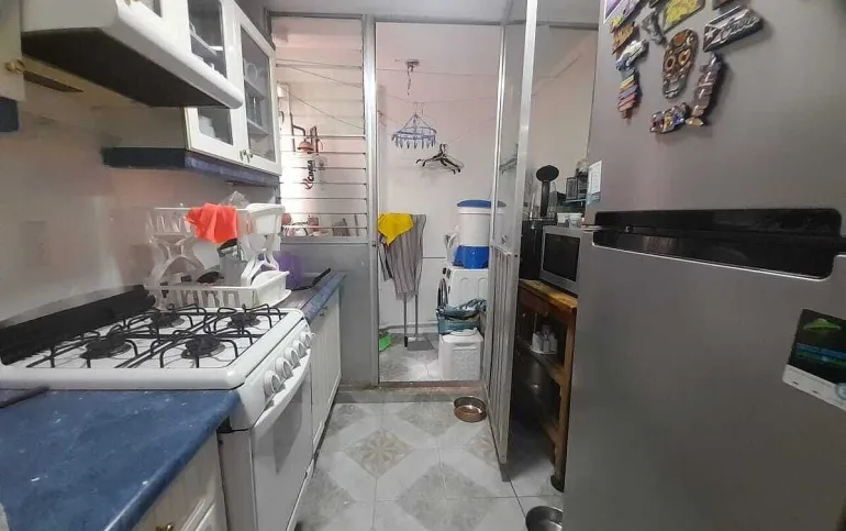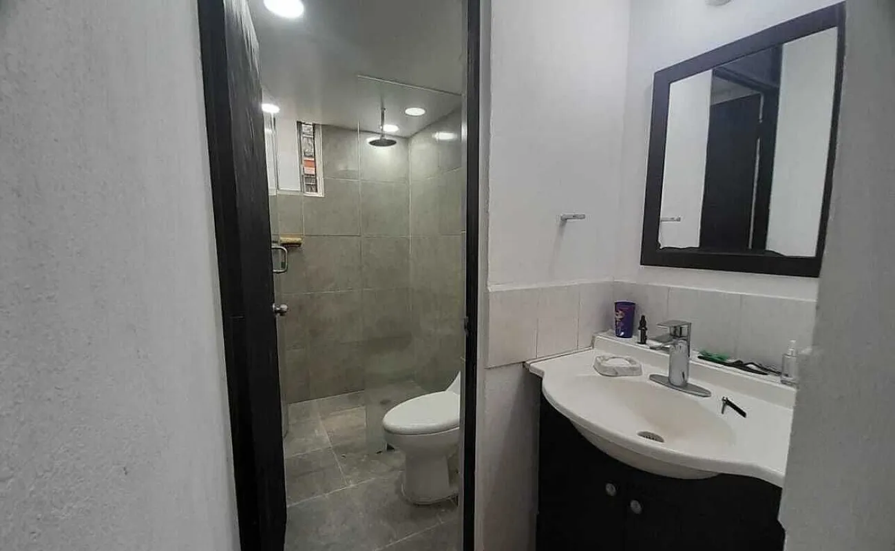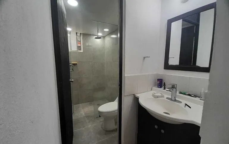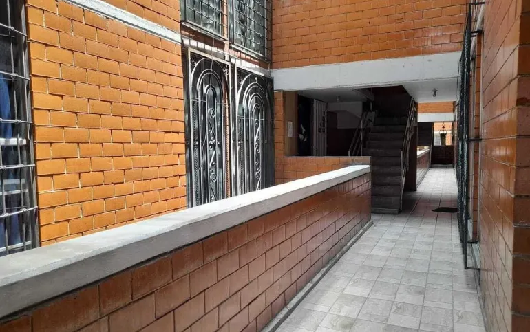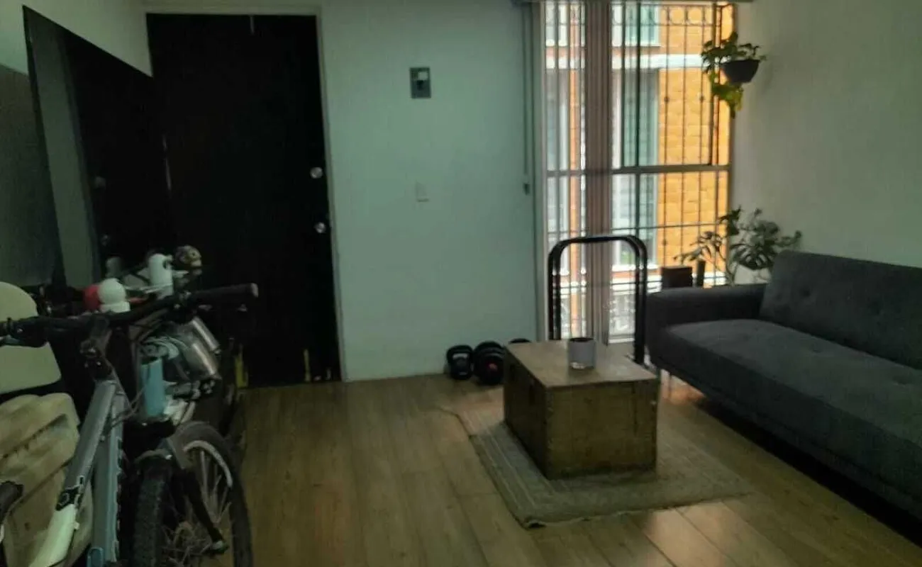 Cómodo e iluminado departamento en segundo piso: dos recámaras, un baño, sala-comedor, lavandería, un estacionamiento, vigilancia 24 horas.