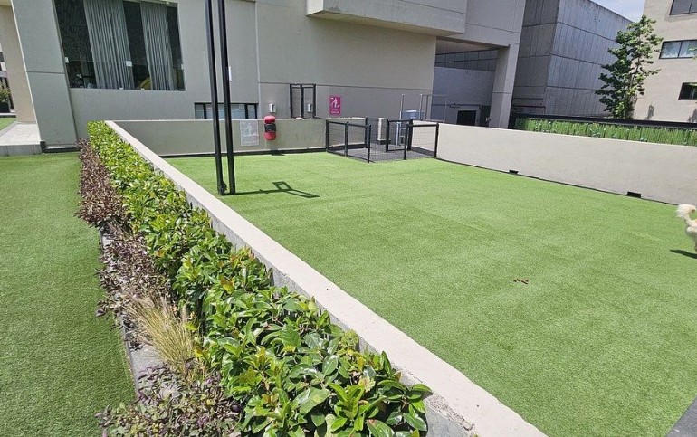 - Áreas verdes, jardín central y pet park