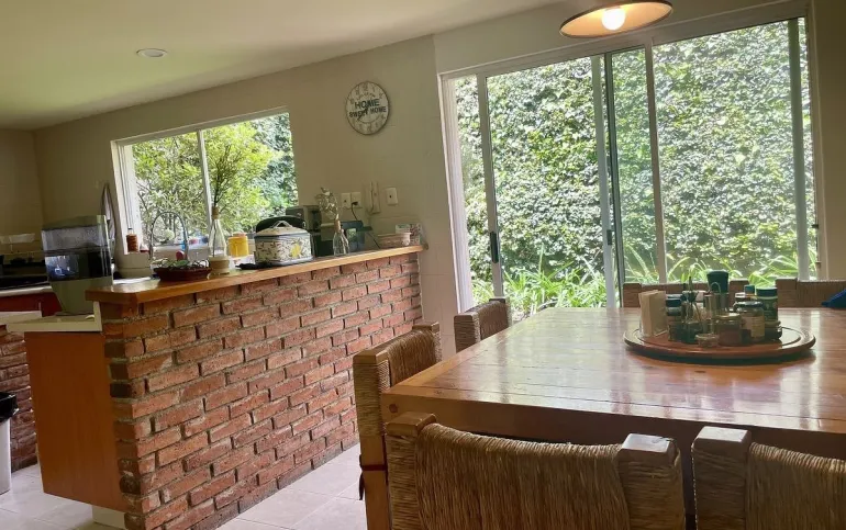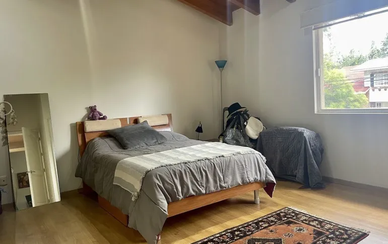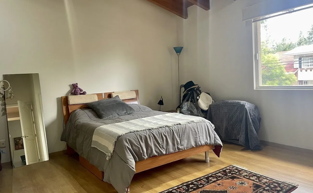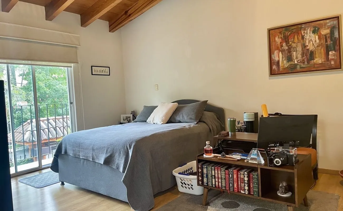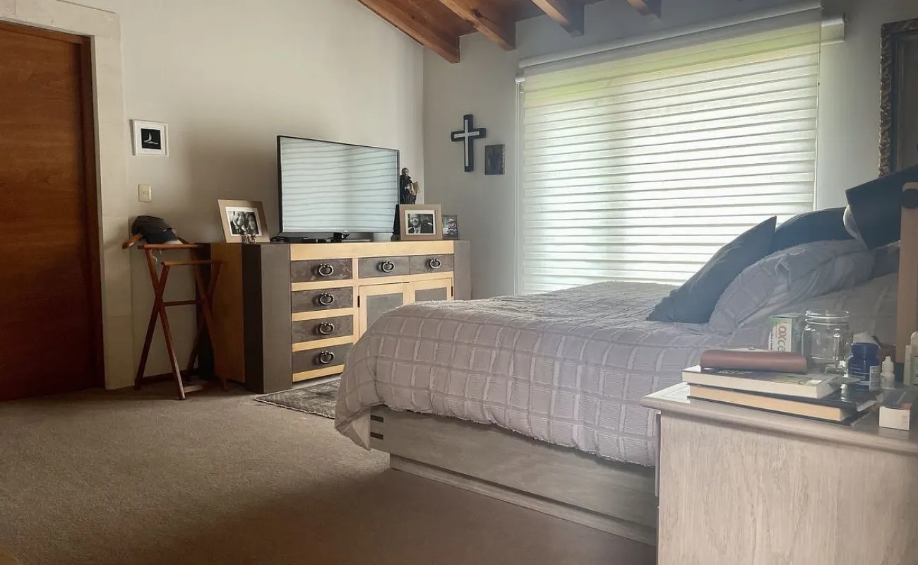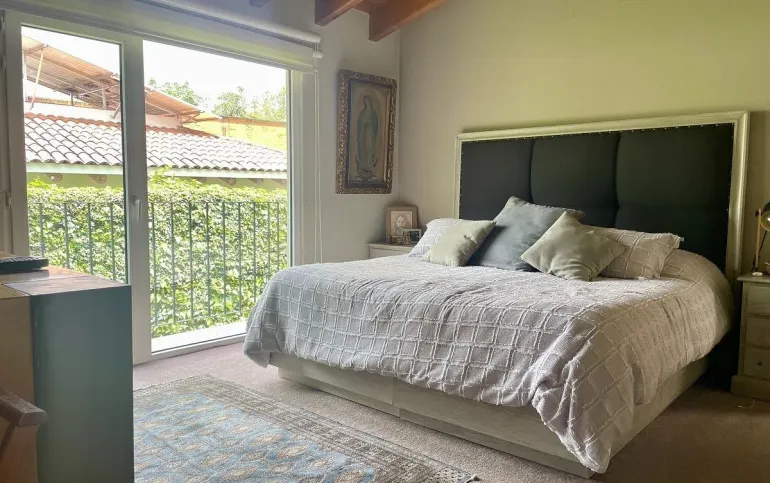 3 RECÁMARAS CON BAÑO, Y BALCÓN, LA PRINCIPAL CUENTA CON VESTIDOR. CUARTO DE TV. TECHOS ALTOS CON VIGAS DE MADERA.