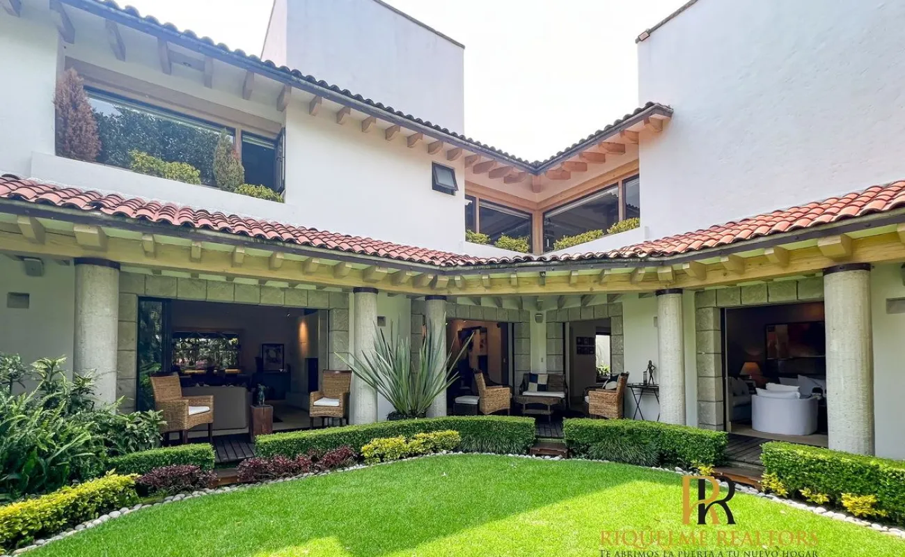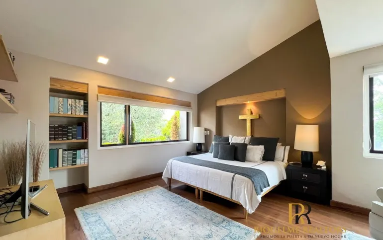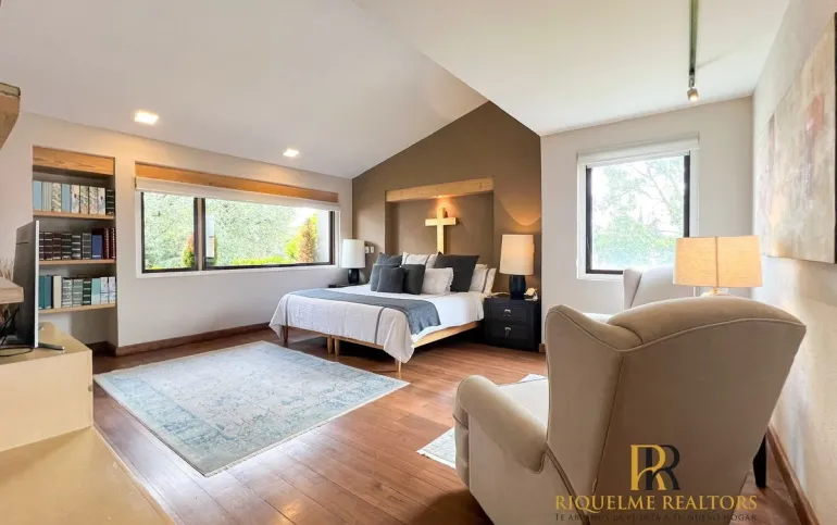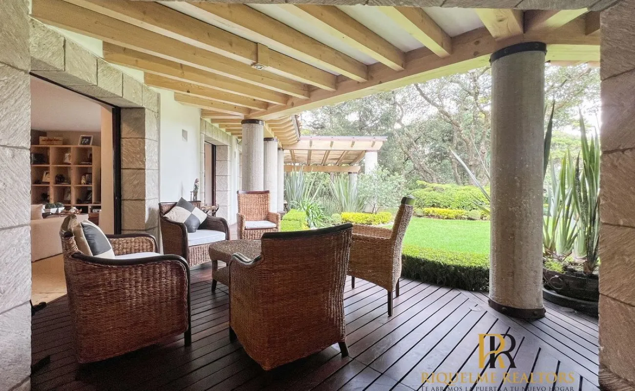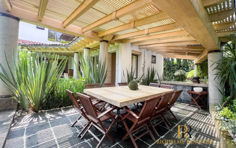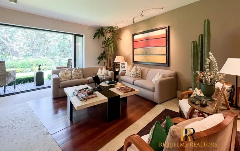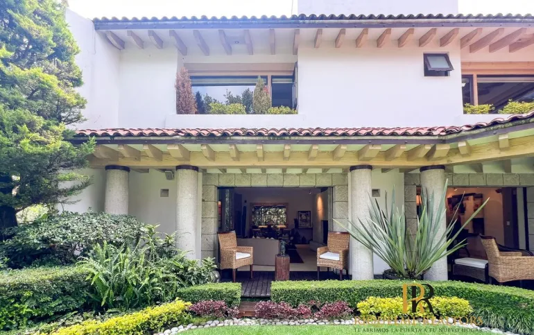 Bienvenido a una propiedad que redefine el concepto de elegancia y confort, ubicada en el prestigioso condominio "La Cima". Con una arquitectura excepcional, mucha luz, materiales de la más alta calidad, privacidad, terrazas y un hermoso jardín, esta residencia ofrece todo lo que una familia moderna puede desear. Principales Características: • Terreno: 605 m² • Construcción: 650 m² • Recámaras: 3 recámaras con vestidor y baño • Baños: 3 baños completos y 2 medios baños Distribución Interior: • Sala con Chimenea: Perfecta para reuniones familiares, con acceso directo a precioso jardín • Comedor Amplio: Ideal para cenas formales, con salida a terraza y jardín, • Cocina Integral: Equipada con isla central, electrodomésticos de alta gama y gran funcionalidad. • Family Room Doble: Un área social adicional con puertas de acceso al jardín, ideal para compartir momentos en familia. • Estudio: Perfecto para quienes trabajan desde casa o necesitan un espacio de concentración, además tiene salida a terraza delantera. • Hall Recibidor de Doble Altura: Un recibimiento impresionante con diseño arquitectónico que maximiza la luz natural. • Terrazas: Terraza de jardín perfectamente integradada a la casa mediante grandes ventanales corredizos: ademas, cuenta con amplia terraza techada con tarja y asador, proporcionando espacios acogedores al aire libre. Características Adicionales: • Materiales de Primera: Cantera, concreto martelinado, pisos de mármol, carpintería en madera natural y vigas de oyamel calado. • Cancelería de Aluminio Línea Europea para mayor durabilidad y estilo. • Tejas Tipo Mayorquino que destacan por su diseño clásico. • Terraza Exterior con Asador Empotrado: Disfruta de una terraza amplia con pérgola de madera de pino y vidrio templado, perfecta para comidas al aire libre. • Cuarto de Planchado y Lavado: Con amplios espacios y excelente distribución. • Cuarto de Servicio y Cuarto de Choferes: Espacios adicionales que agregan funcionalidad a la casa. • Cuarto de Máquinas, Doble Bodega y 4 Estacionamientos: Espacio de sobra para almacenamiento y vehículos. Amenidades y Tecnología: • Hidroneumático, Calefacción Hidrónica y Paneles Solares: Para garantizar confort en todo momento. • Riego por Aspersión y Muros de Contención: Maximización del mantenimiento del jardín y estabilidad estructural. • Fuente Frontal: Detalle arquitectónico que aporta elegancia al exterior. Amenidades del Condominio: • Seguridad y Vigilancia 24/7: Acceso controlado y sistema de seguridad de alto nivel. • Deportivas y Sociales: 2 canchas de pádel, cancha de fútbol, pista de jogging e invernadero. • Áreas Verdes: Amplios jardines con juegos infantiles, salón de fiestas para 300 personas. Mantenimiento de $9,400 que incluye: seguridad, videocámaras y jardinería del desarrollo y del interior de la casa Esta es tu oportunidad de vivir en una casa diseñada para quienes buscan lujo, comodidad y exclusividad. Agenda tu visita hoy y comienza a disfrutar del estilo de vida que siempre soñaste en Condominio "La Cima". PRECIO $27,850,000
